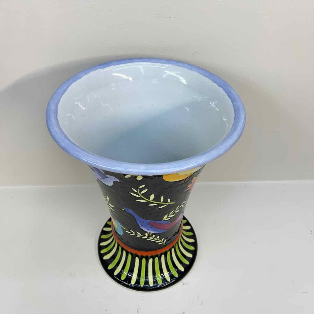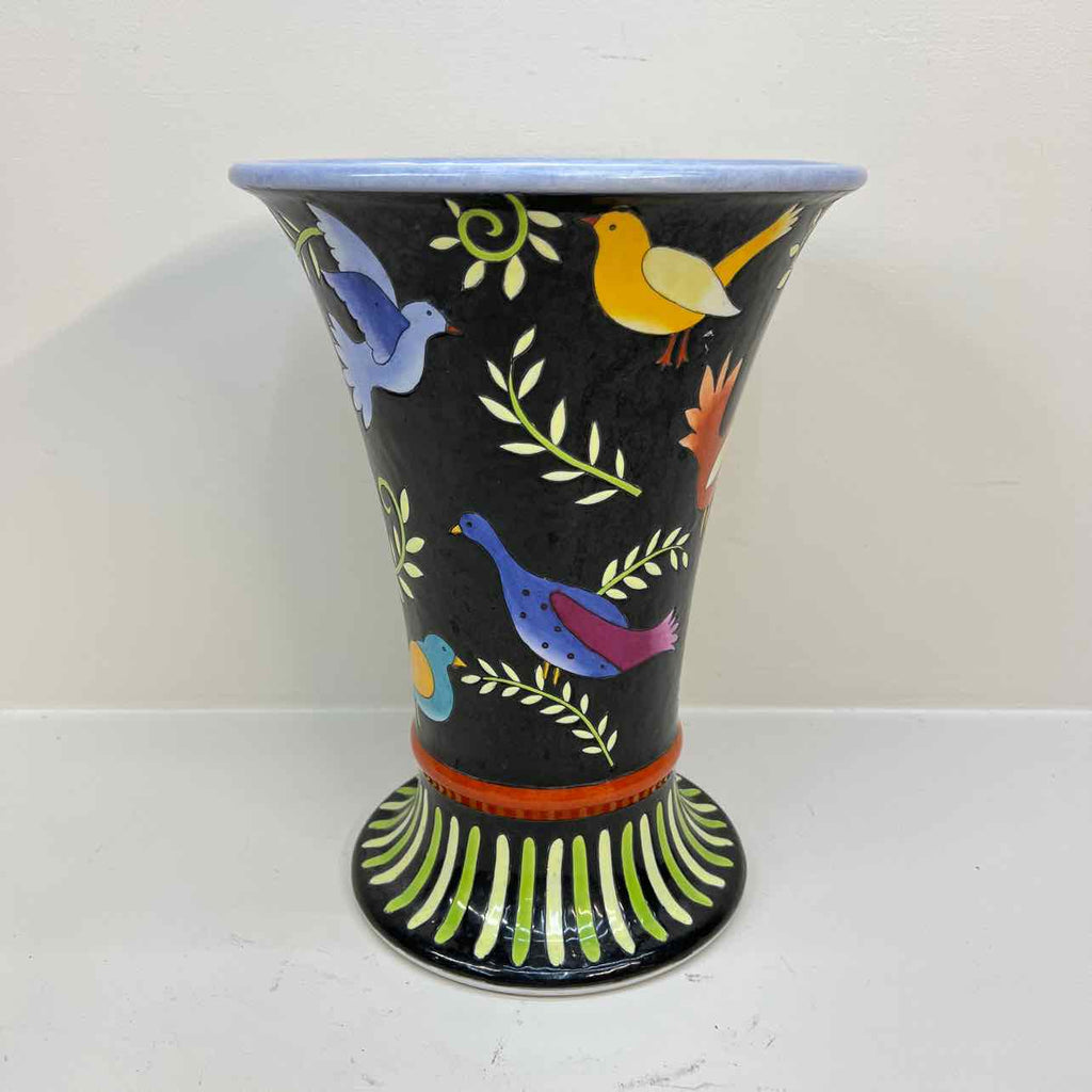 Black Vase w/ Colorful Bird Design - 12" Tall x 8.5" Wide