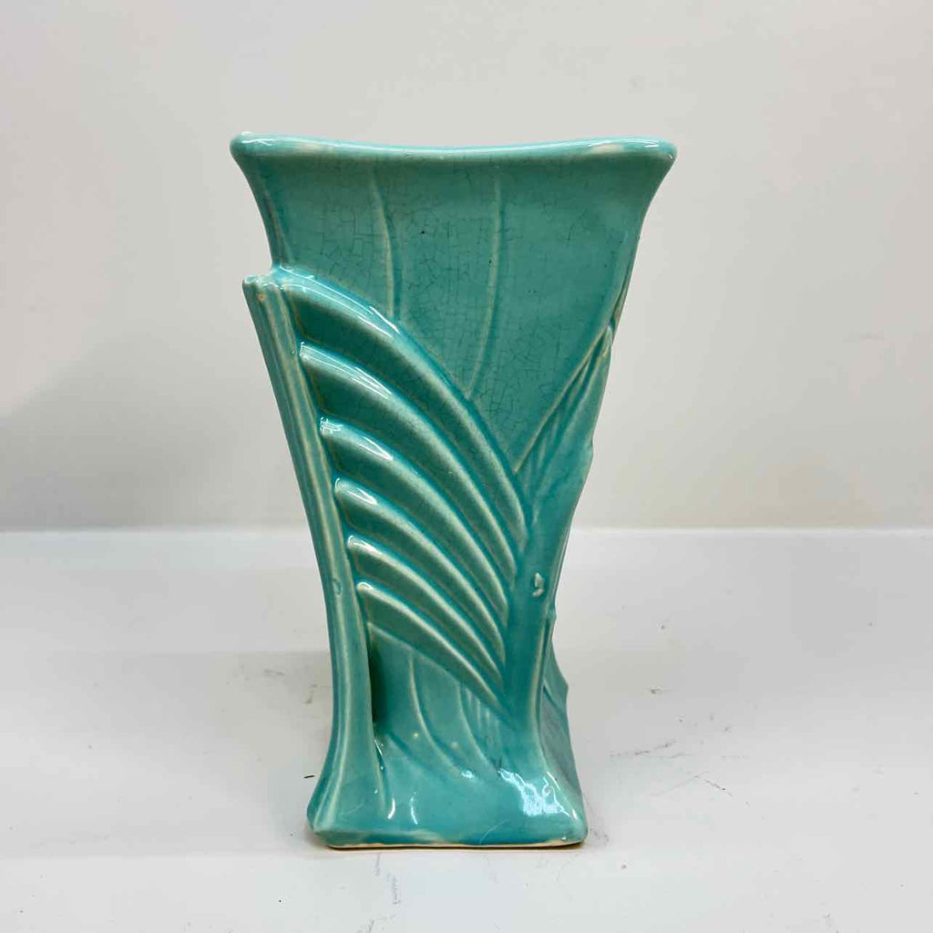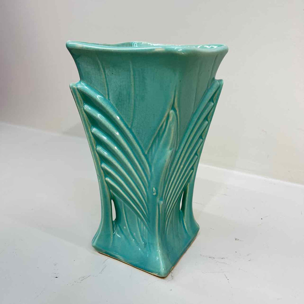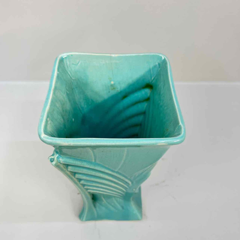 Vintage McCoy Art Deco Aqua Blue Vase - 9" Tall
