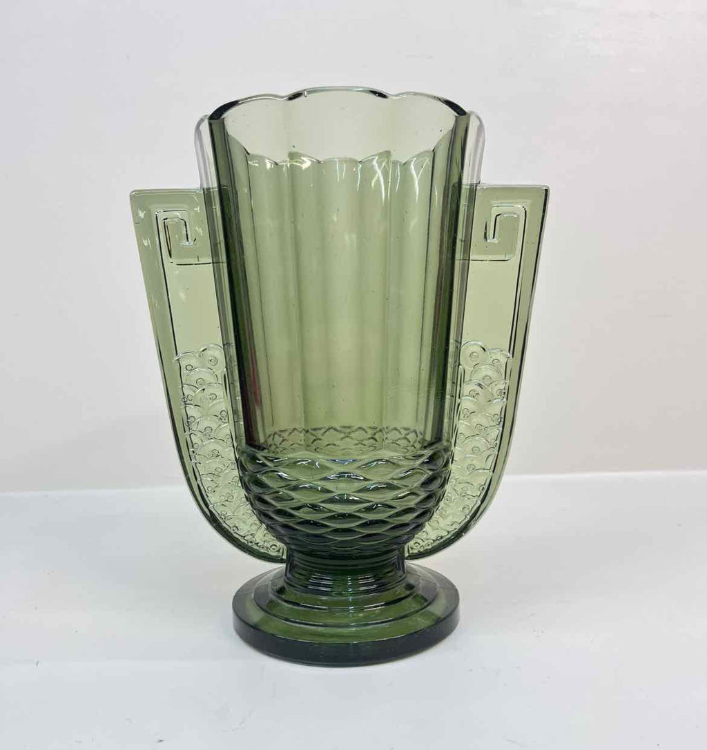 Vintage Art Deco Green Glass "Romeo" Vase by Val Saint Lambert - 8.5" Tall