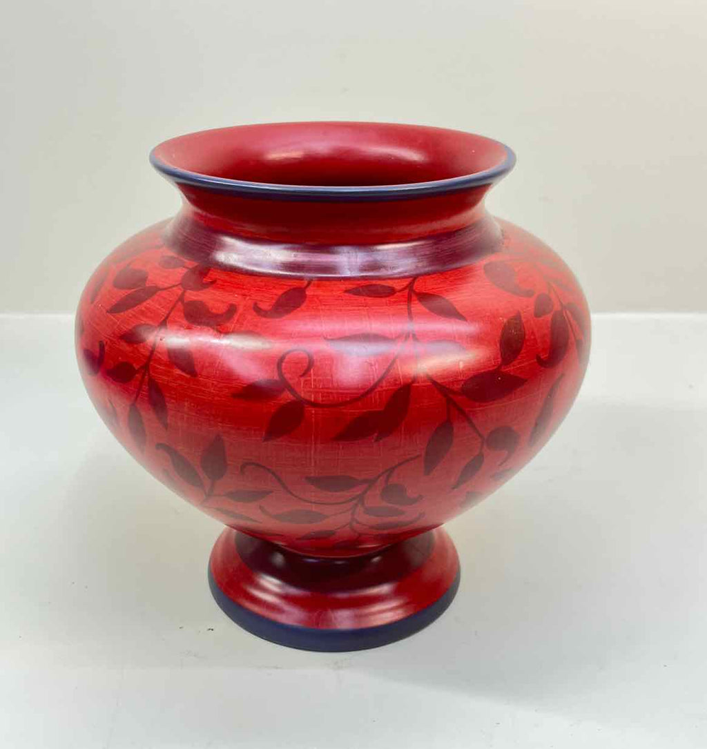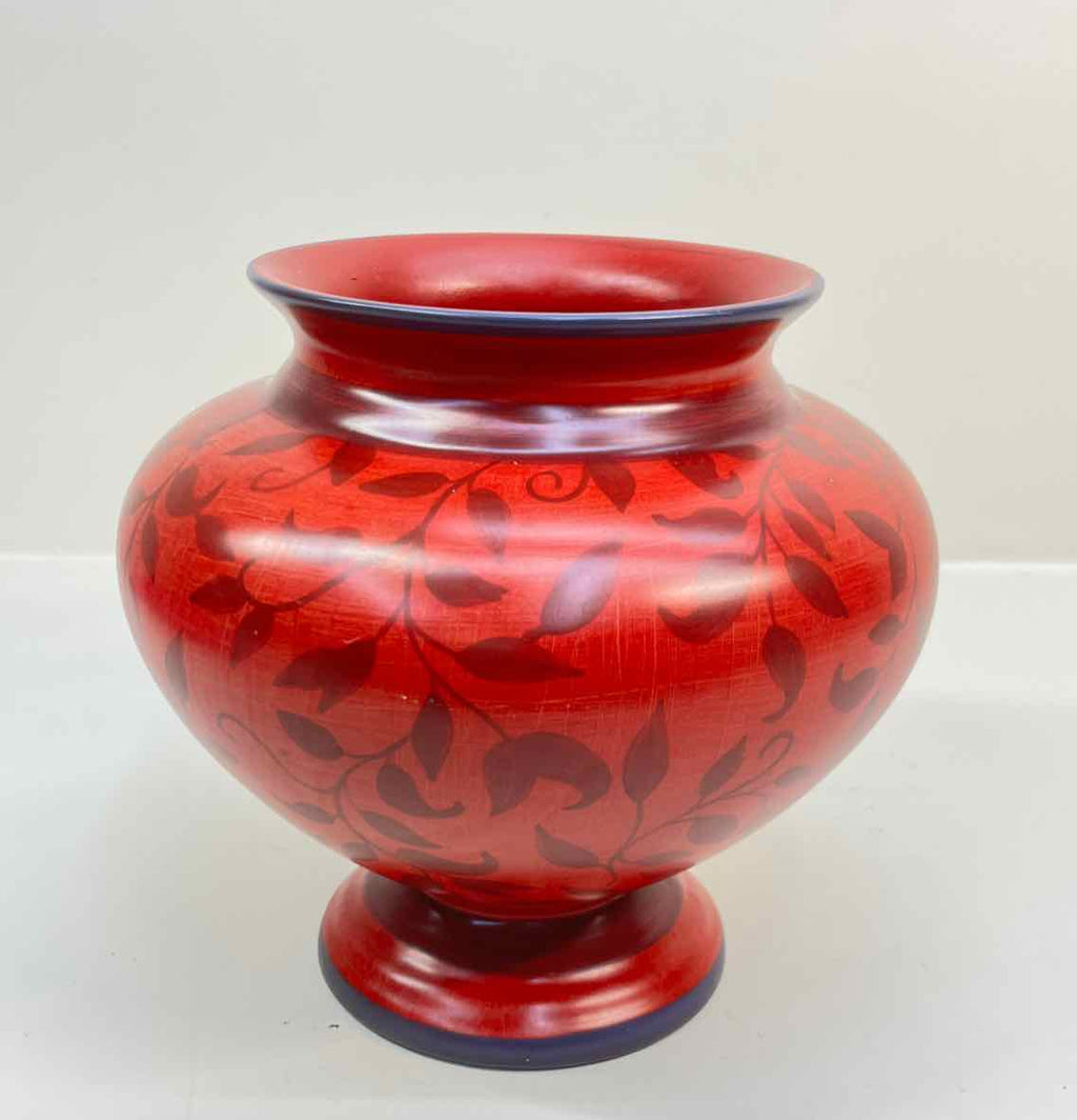 Red Ceramic Vase w/ Leaf Pattern - 8.5" Tall
