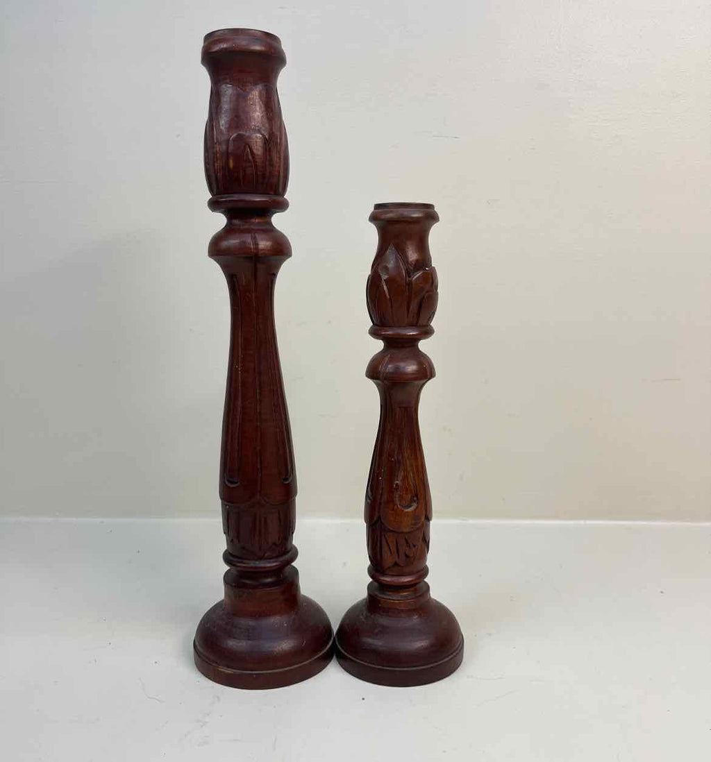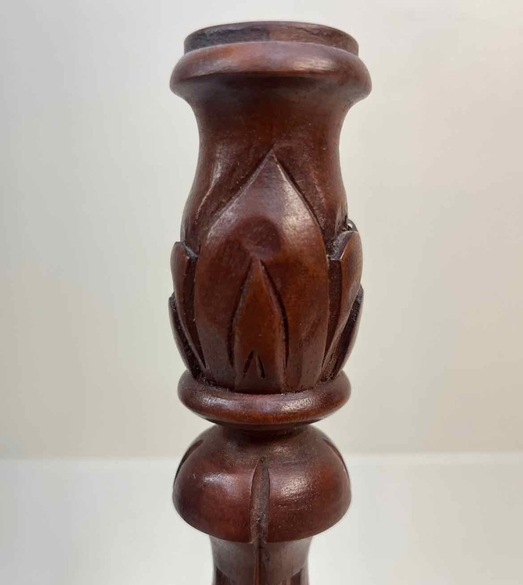 Set of 2 Vintage Carved Wood Candle Holders - 13.5" Tall