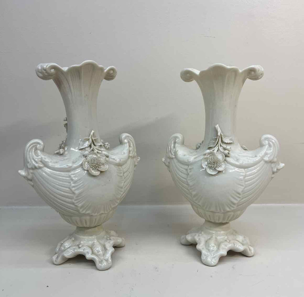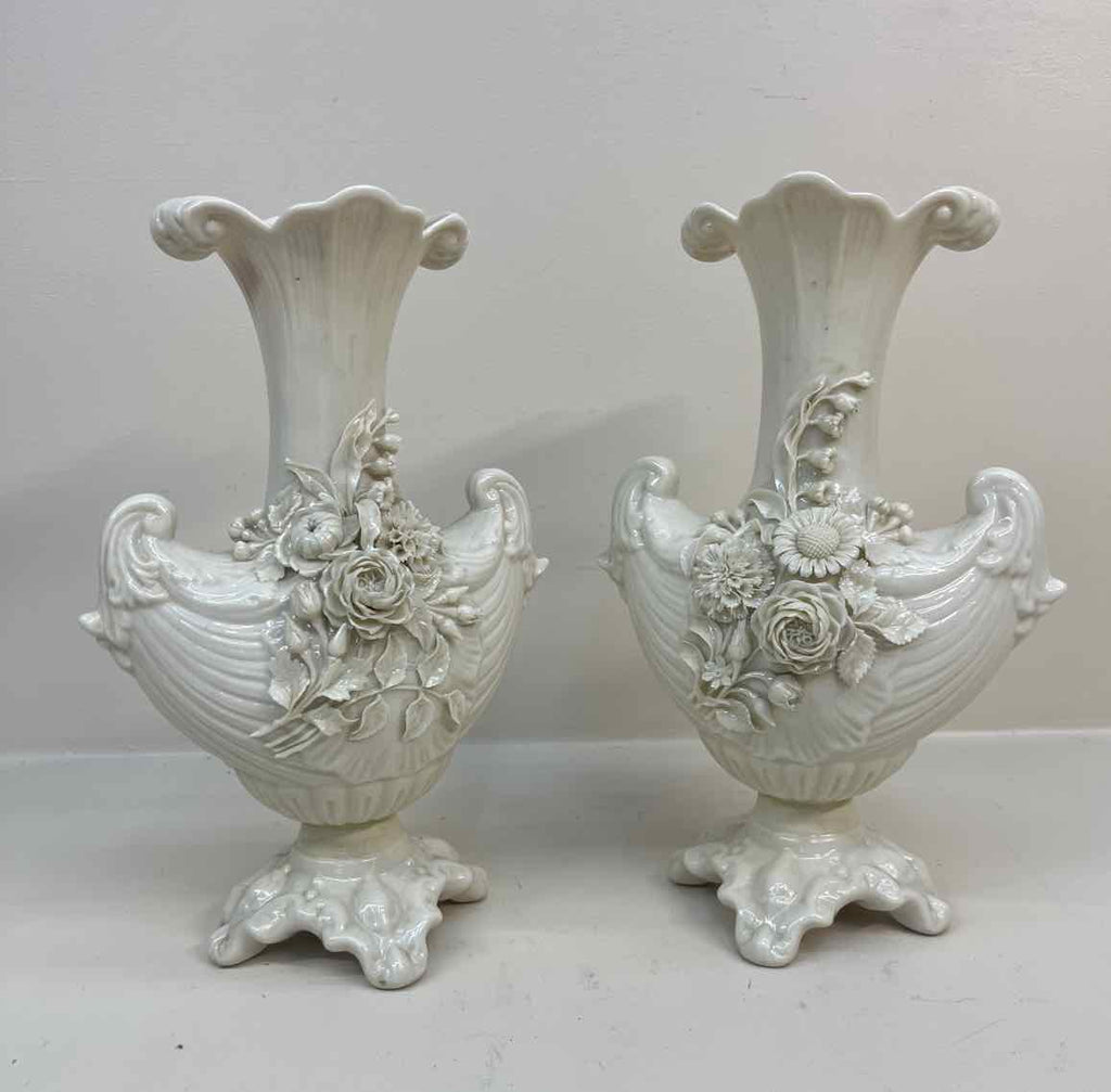 Set of 2 Vintage Belleek Prince Arthur Vases - 10.5" Tall