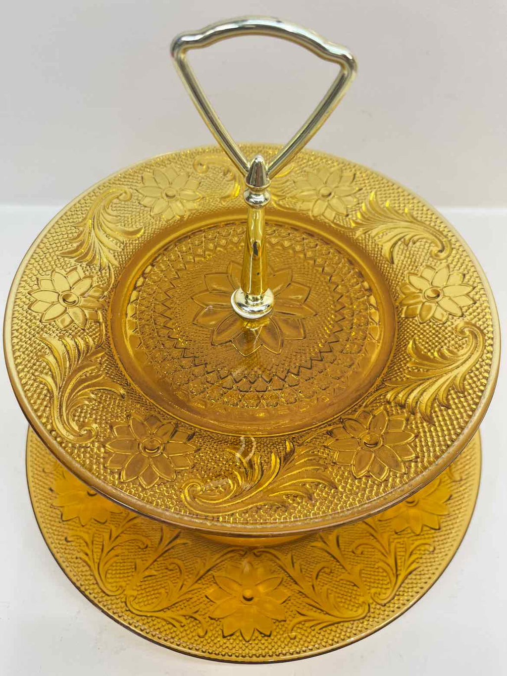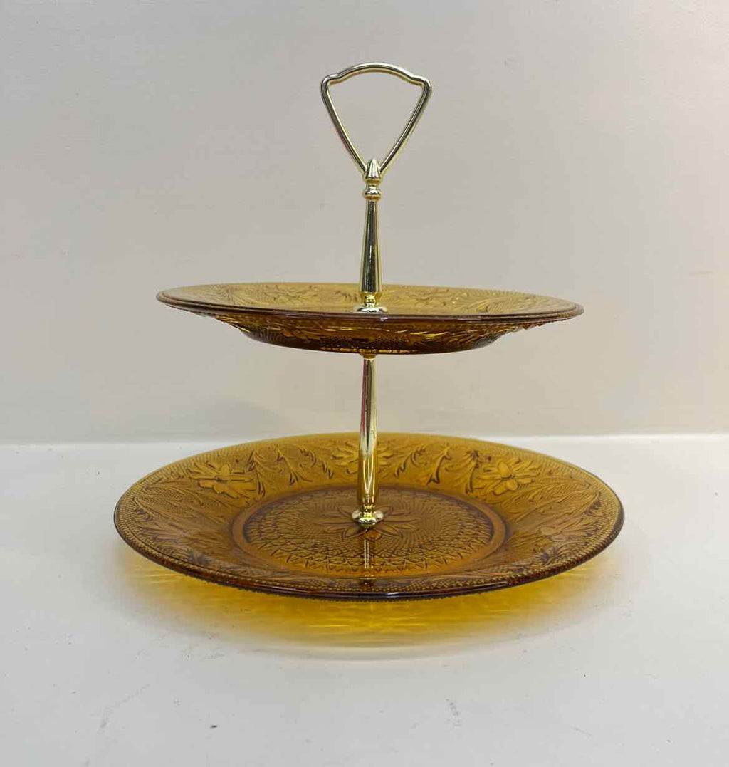 Vintage Amber GLass 2-Tier Display Stand - 10" Tall x 10" Wide