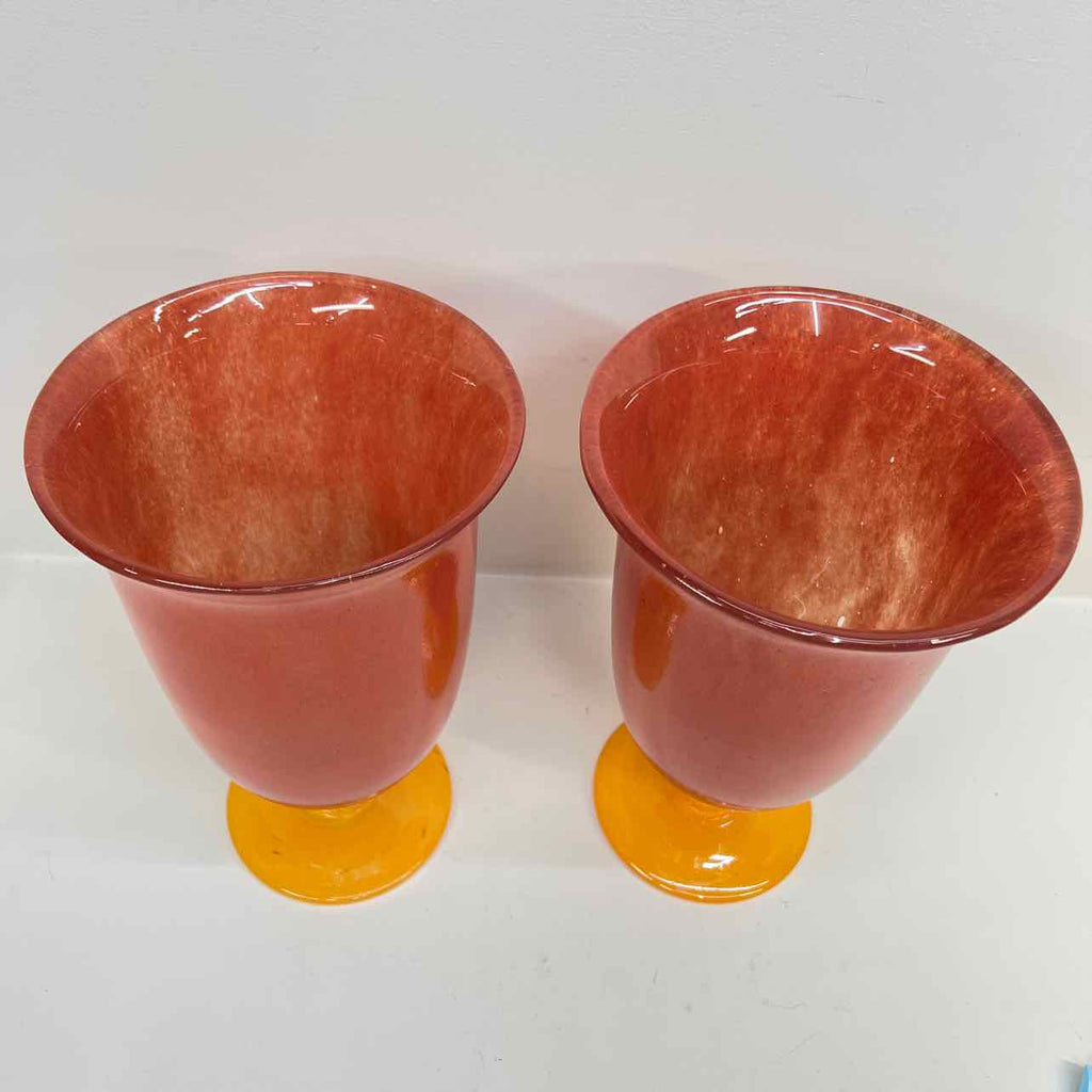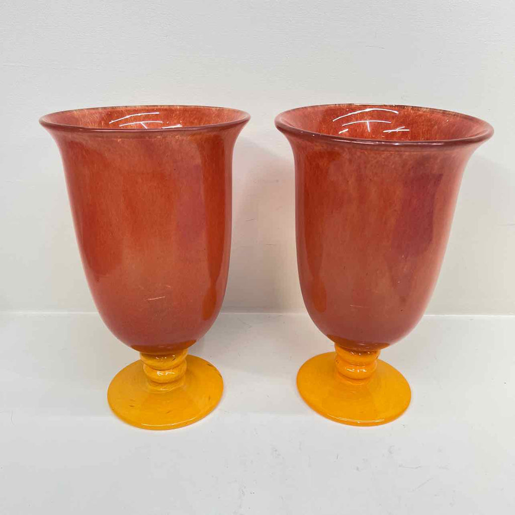 Set of 2 Red & Orange Glass Vases - 11" Tall x 7" Wide