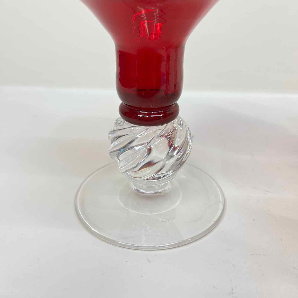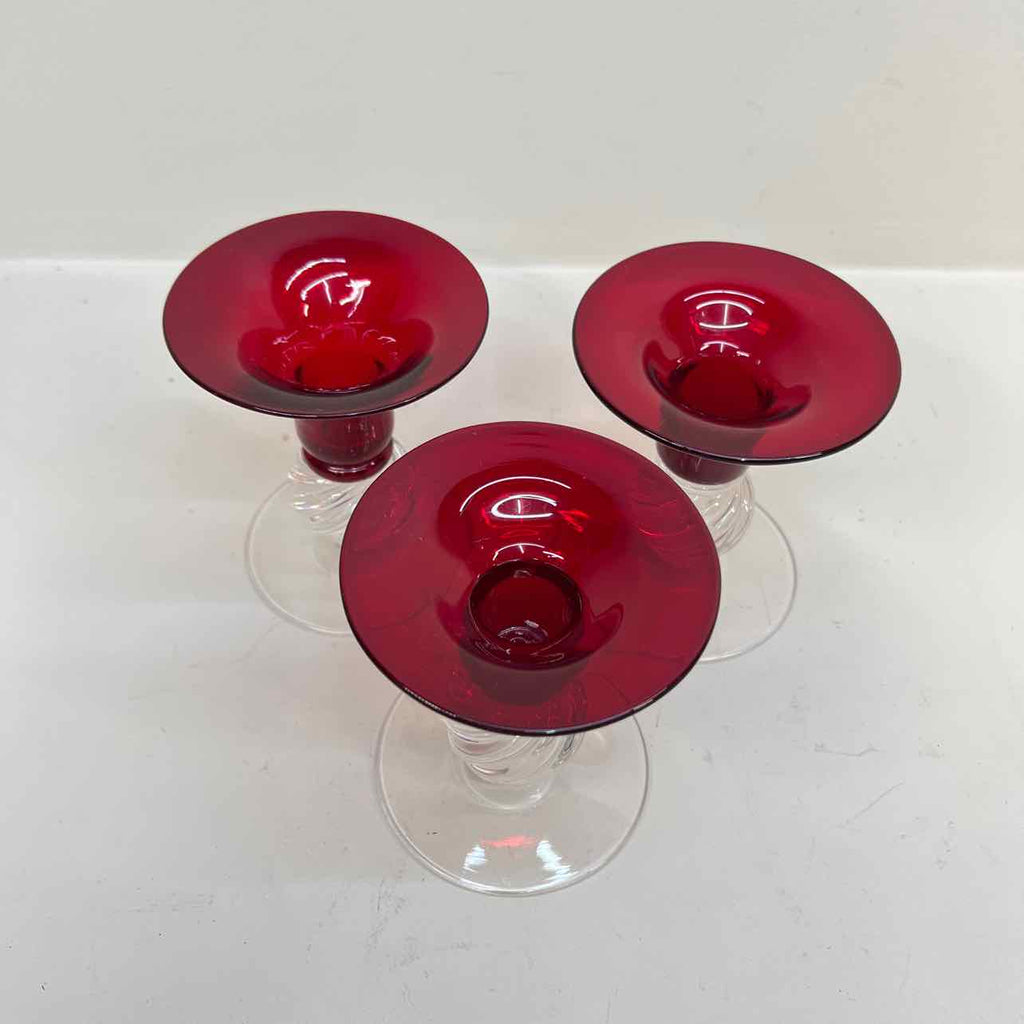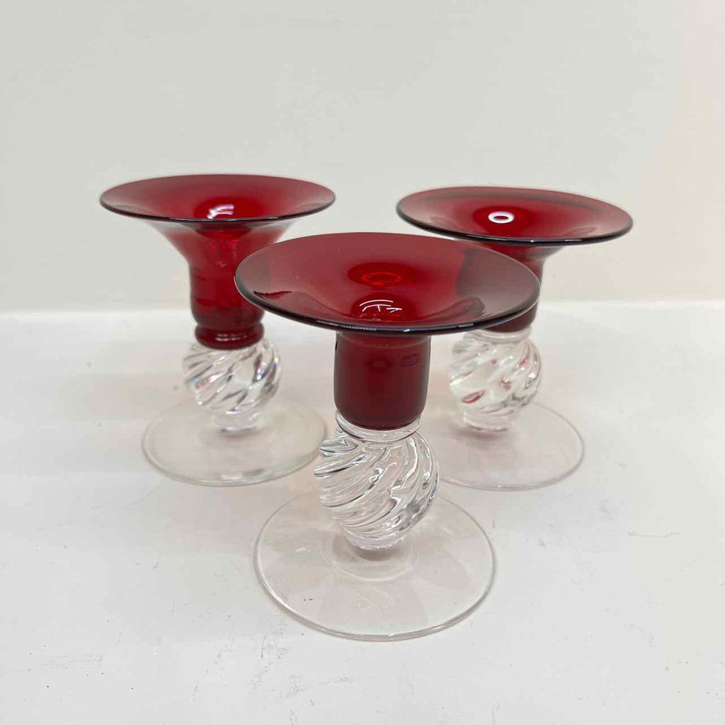 Set of 3 Clear & Red Glass Candle Holders 4.5" Tall