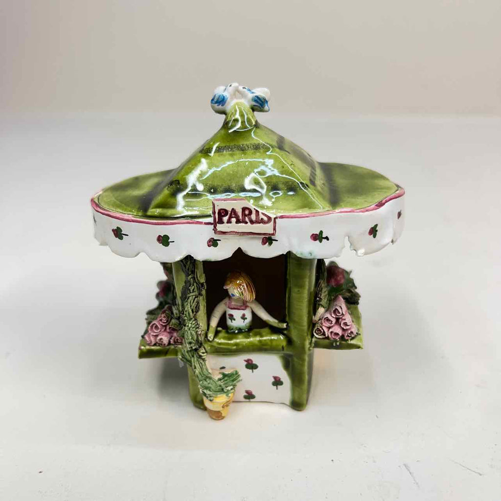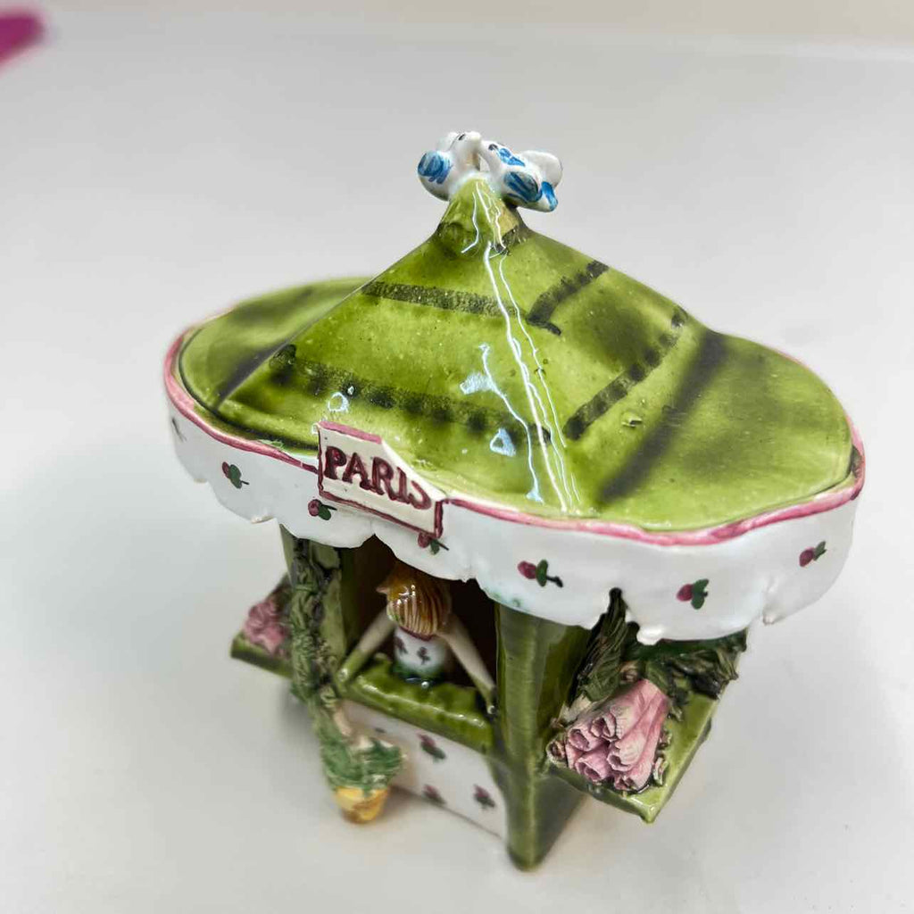 Ceramic Paris Flower Stall - Priced For Condition, Chipped - 4" Tall