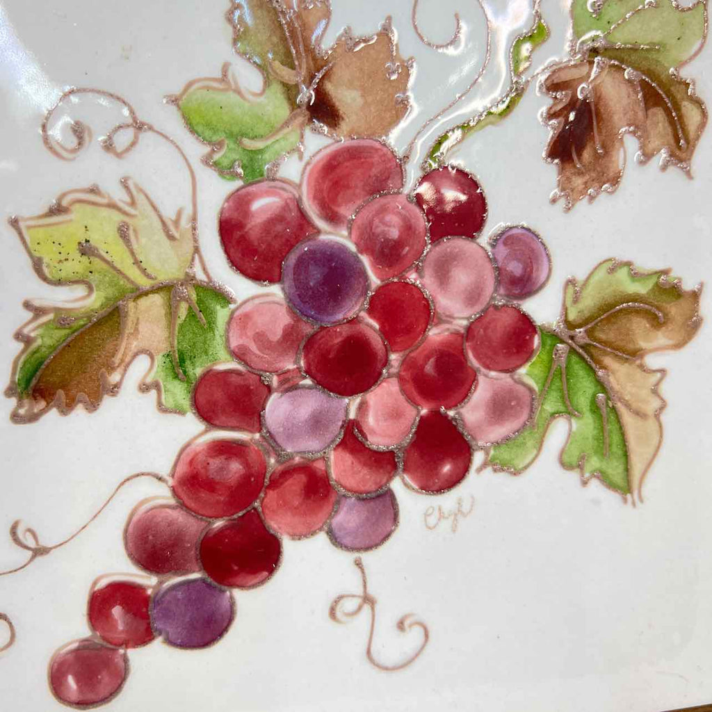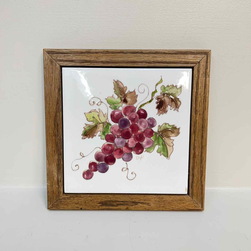 Vintage Wood Framed Hand Painted Grape Tile - 8" x 8"
