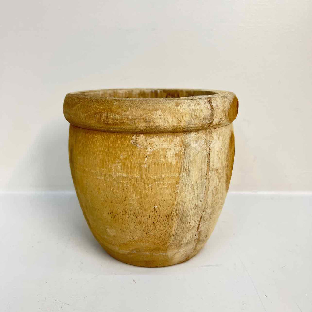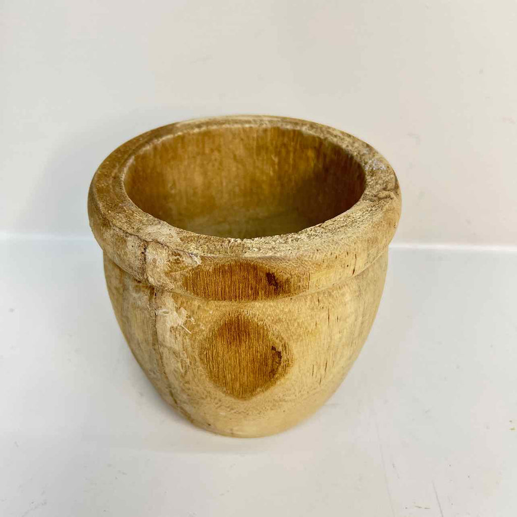 Carved Wood Pot - 5" Tall x 5.5" Across