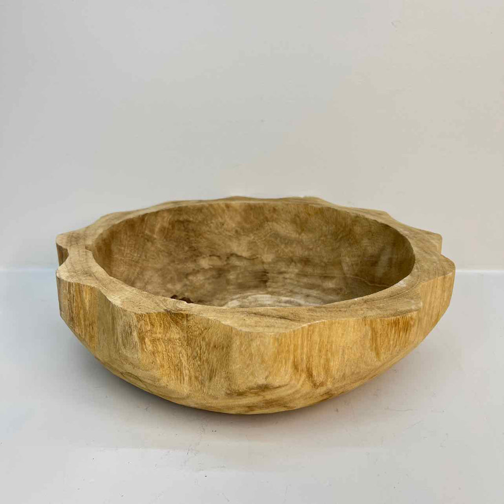 Scalloped Wood Bowl - 4.5" Tall x 14" Wide