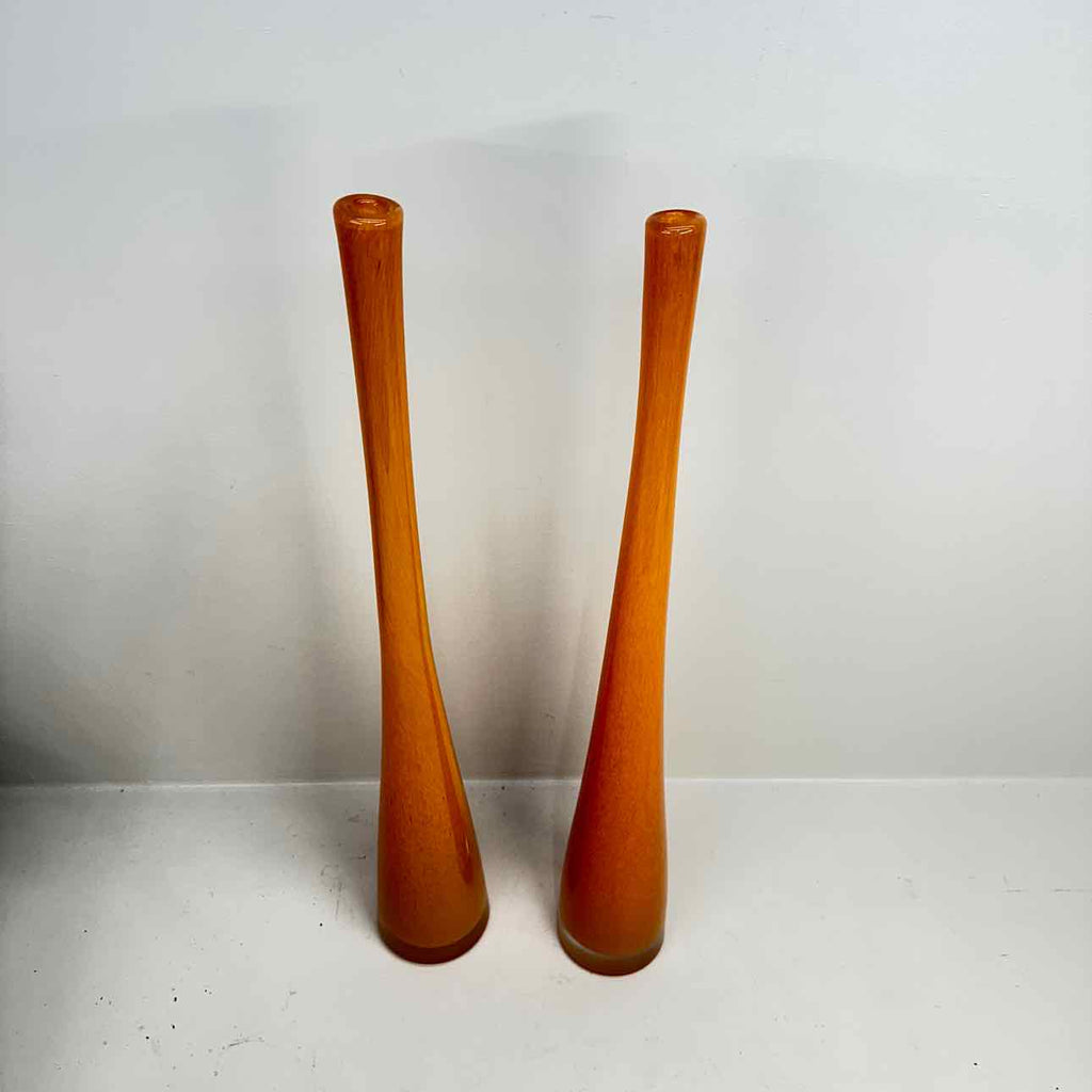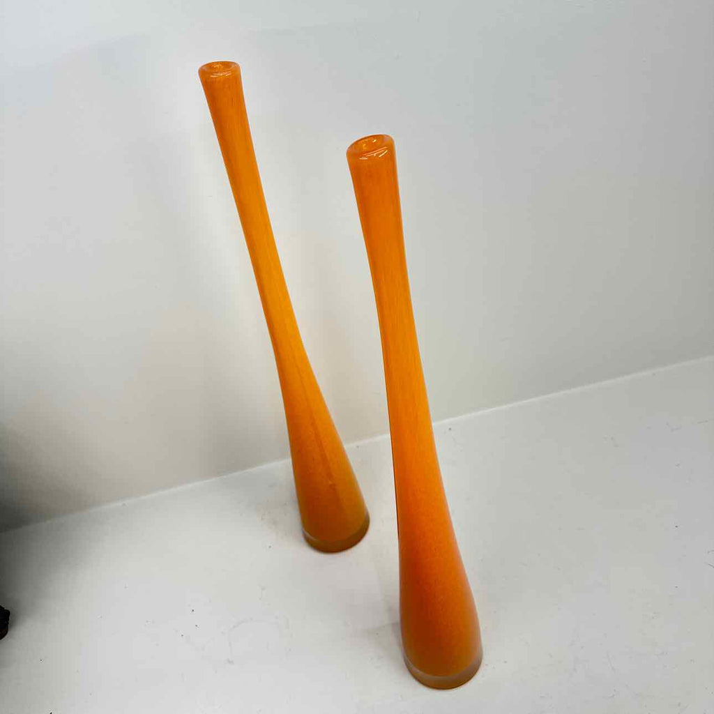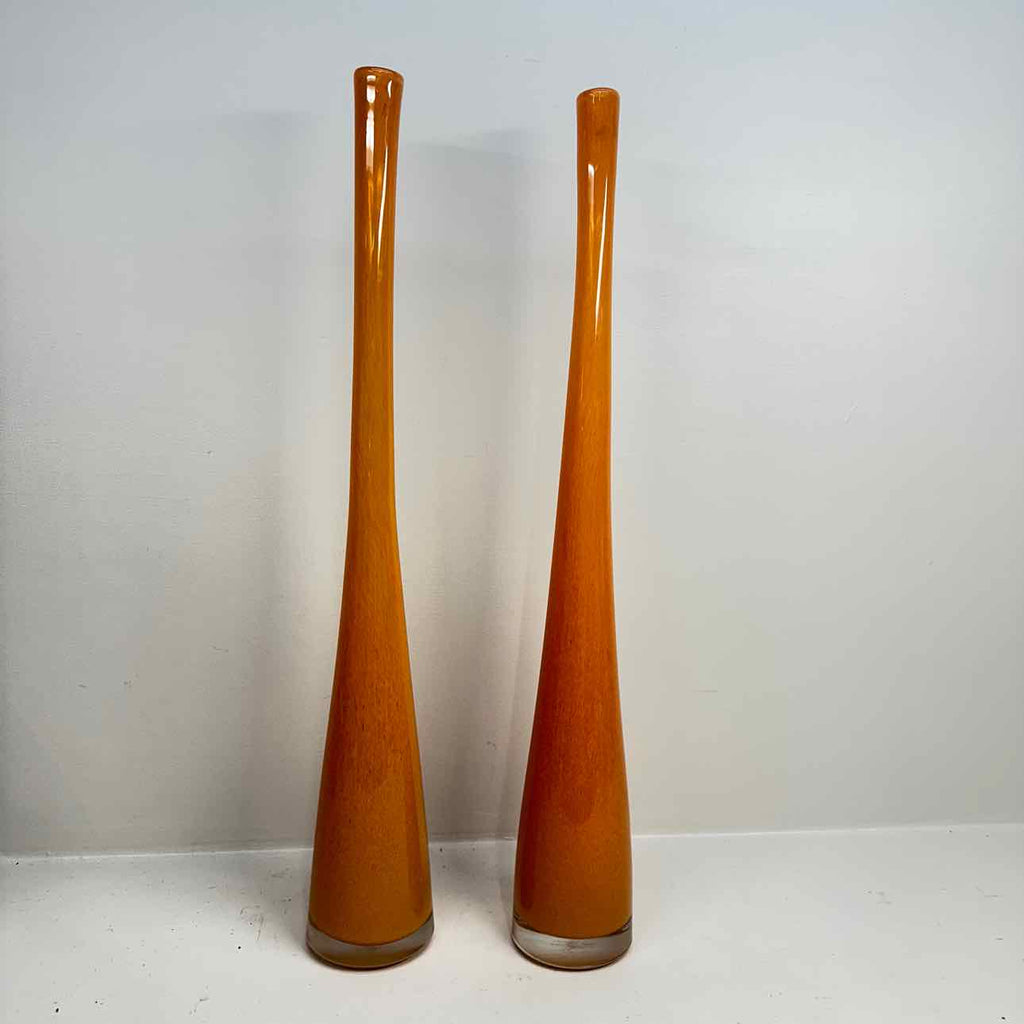 Set of 2 Vilniaus Stiklo Studija Art Glass Vases - Signed - Orange - 32" Tall