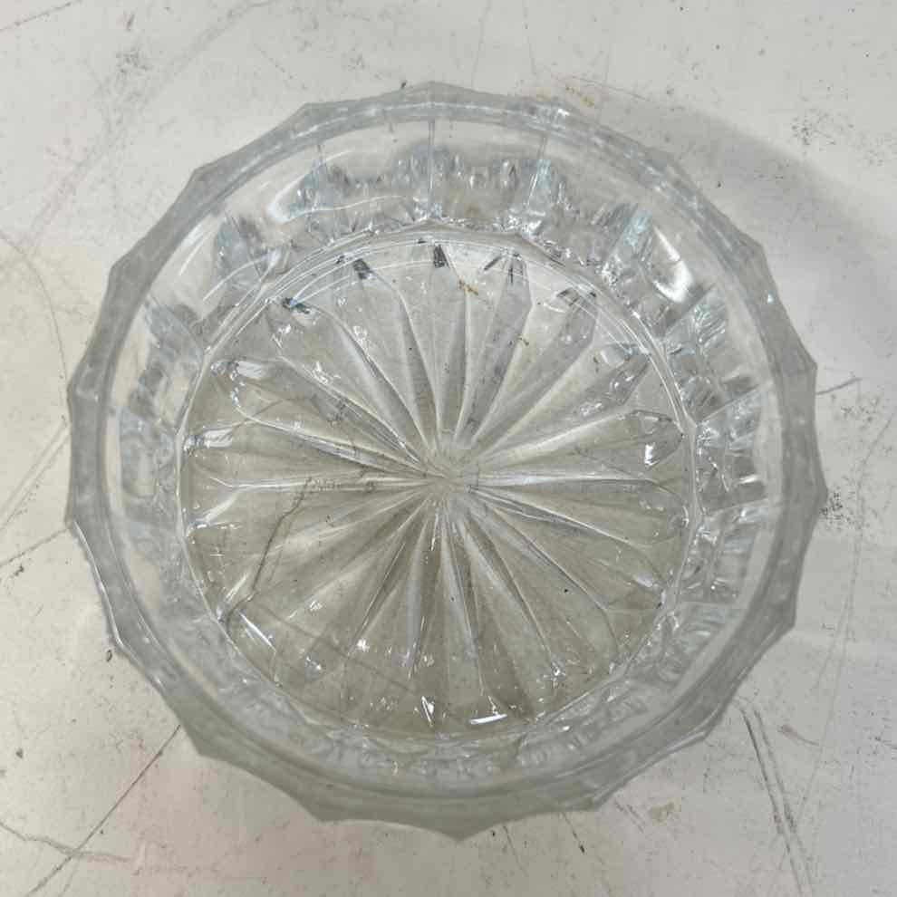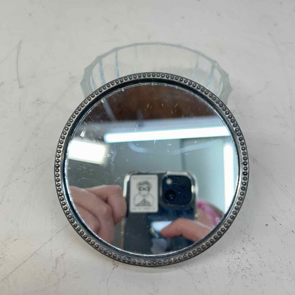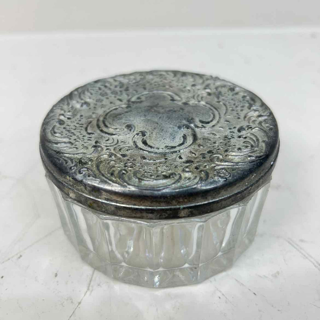 Vintage Vanity Crystal Powder Dish w/ Silverplate Mirrored Lid - 2" Tall x 4" Wide