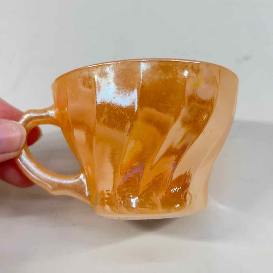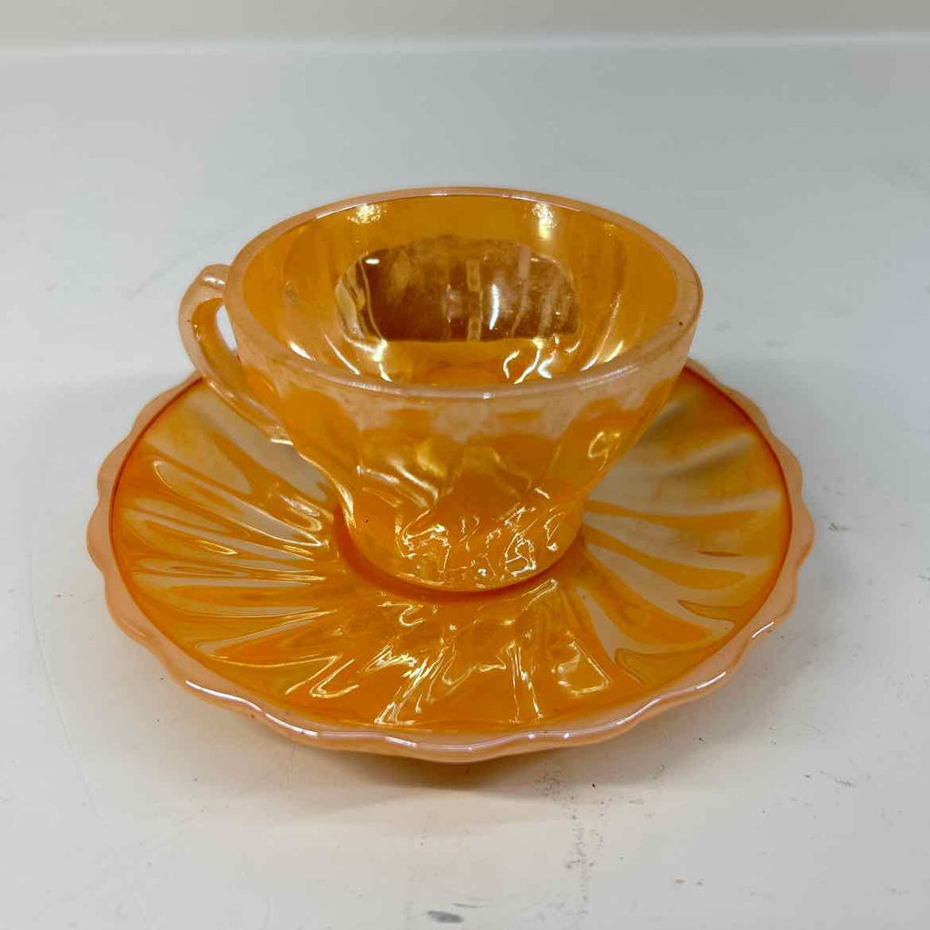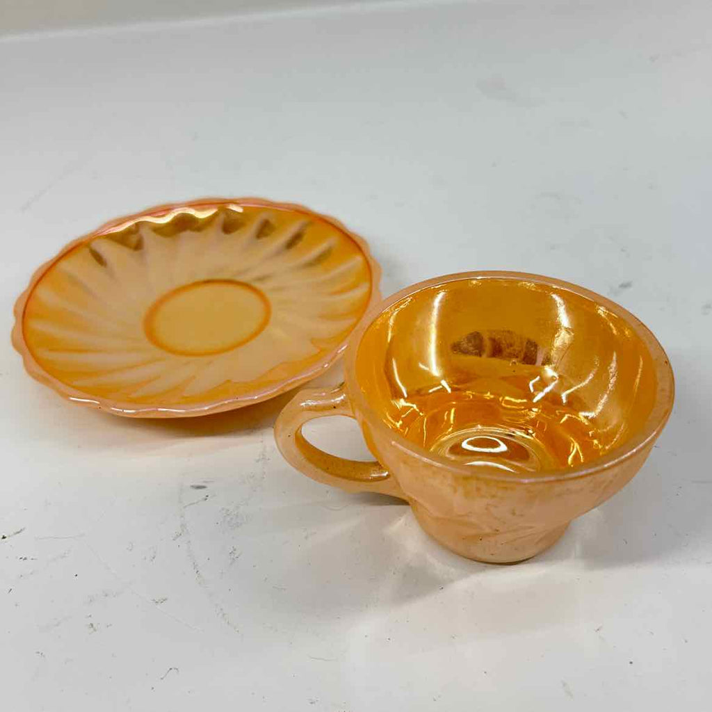 Vintage Anchor Hocking Peach Lustre Tea Cup & Saucer - 2.5" Tall