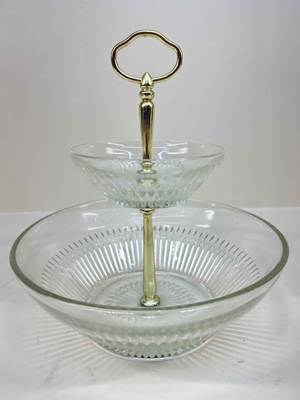 Vintage 2-Tier Glass Chip & Dip Set - 9" Tall x 9" Wide
