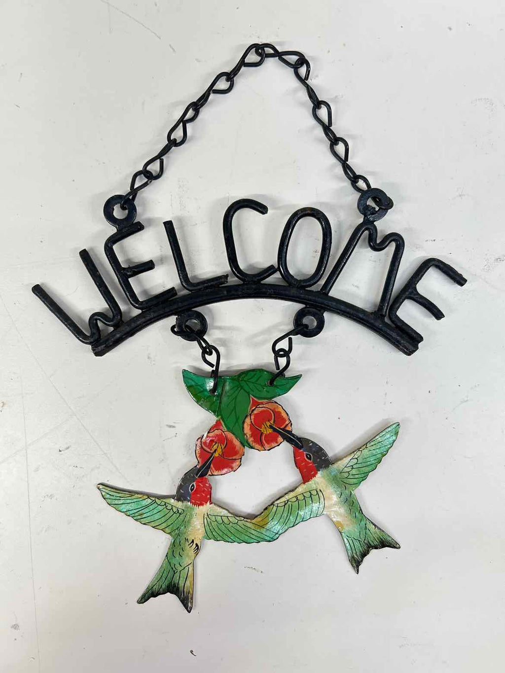 Vintage Cast Iron Hummingbird Welcome Sign - 7" Tall x 7" Wide