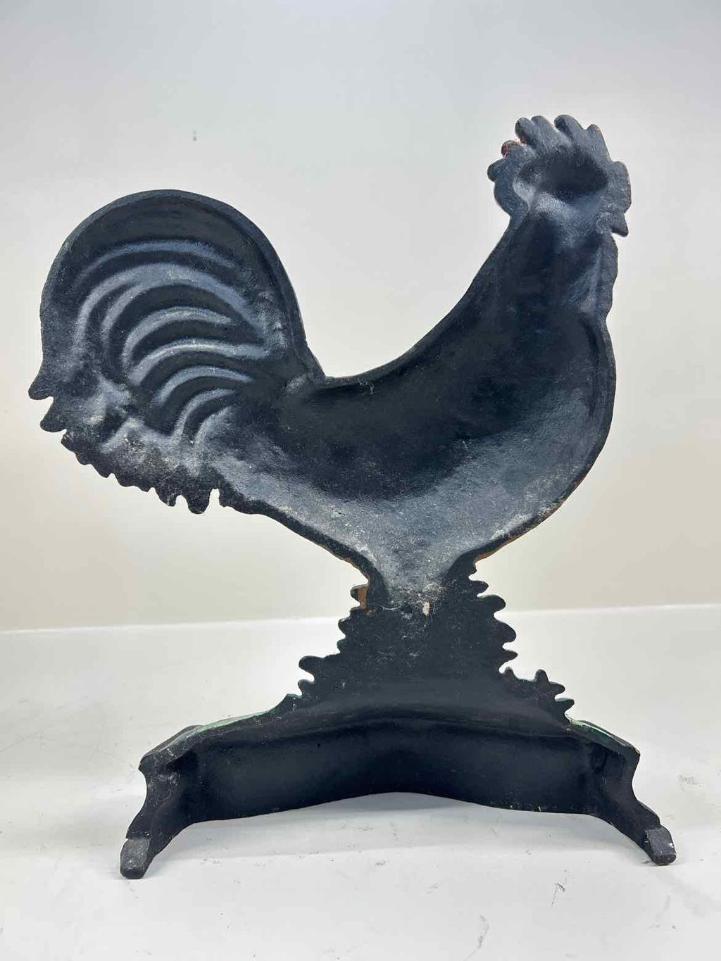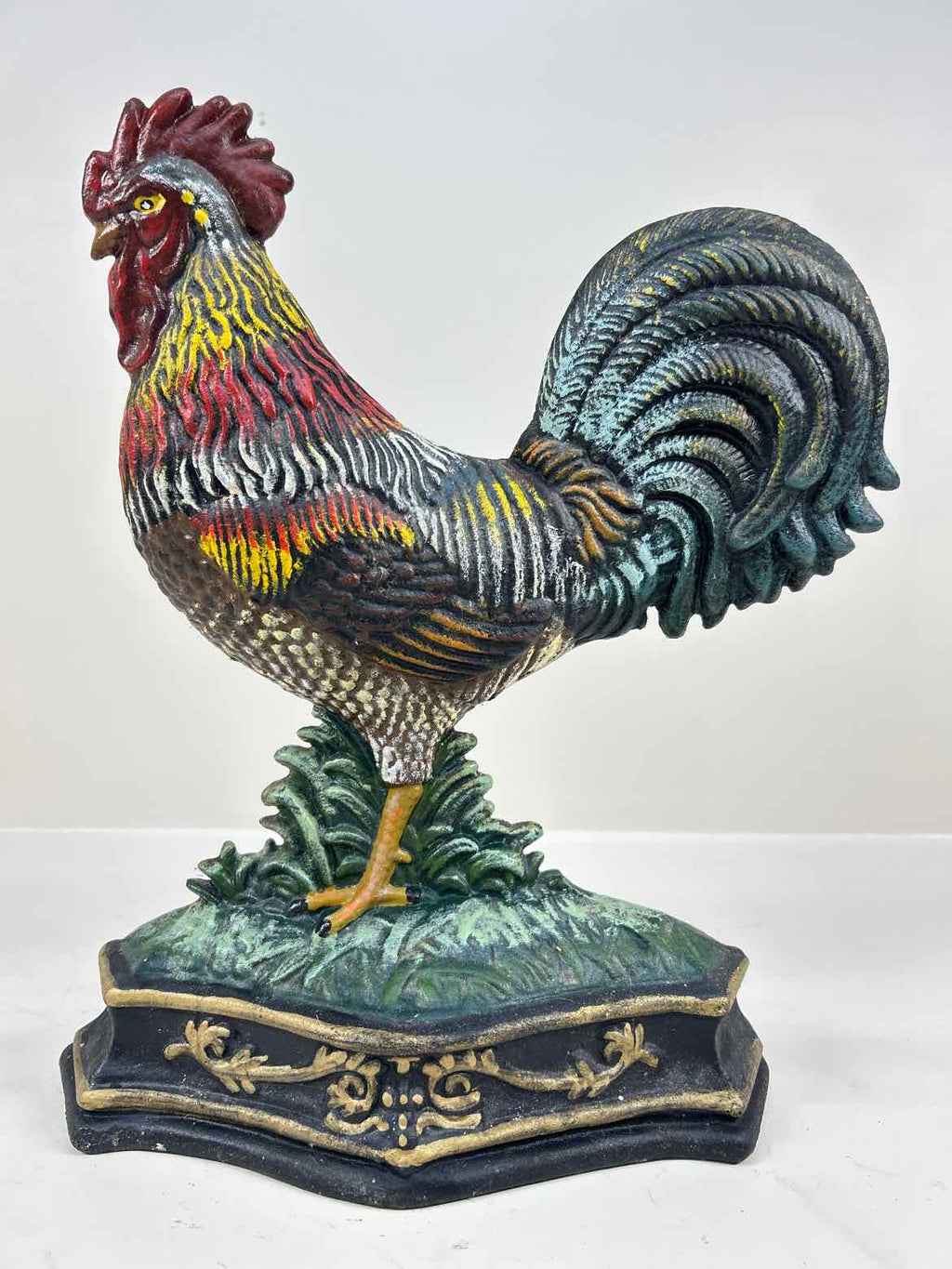 Painted Cast Iron Rooster with Black and Gold Base - 13" Tall