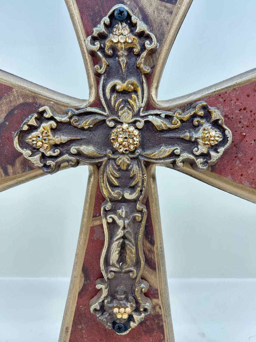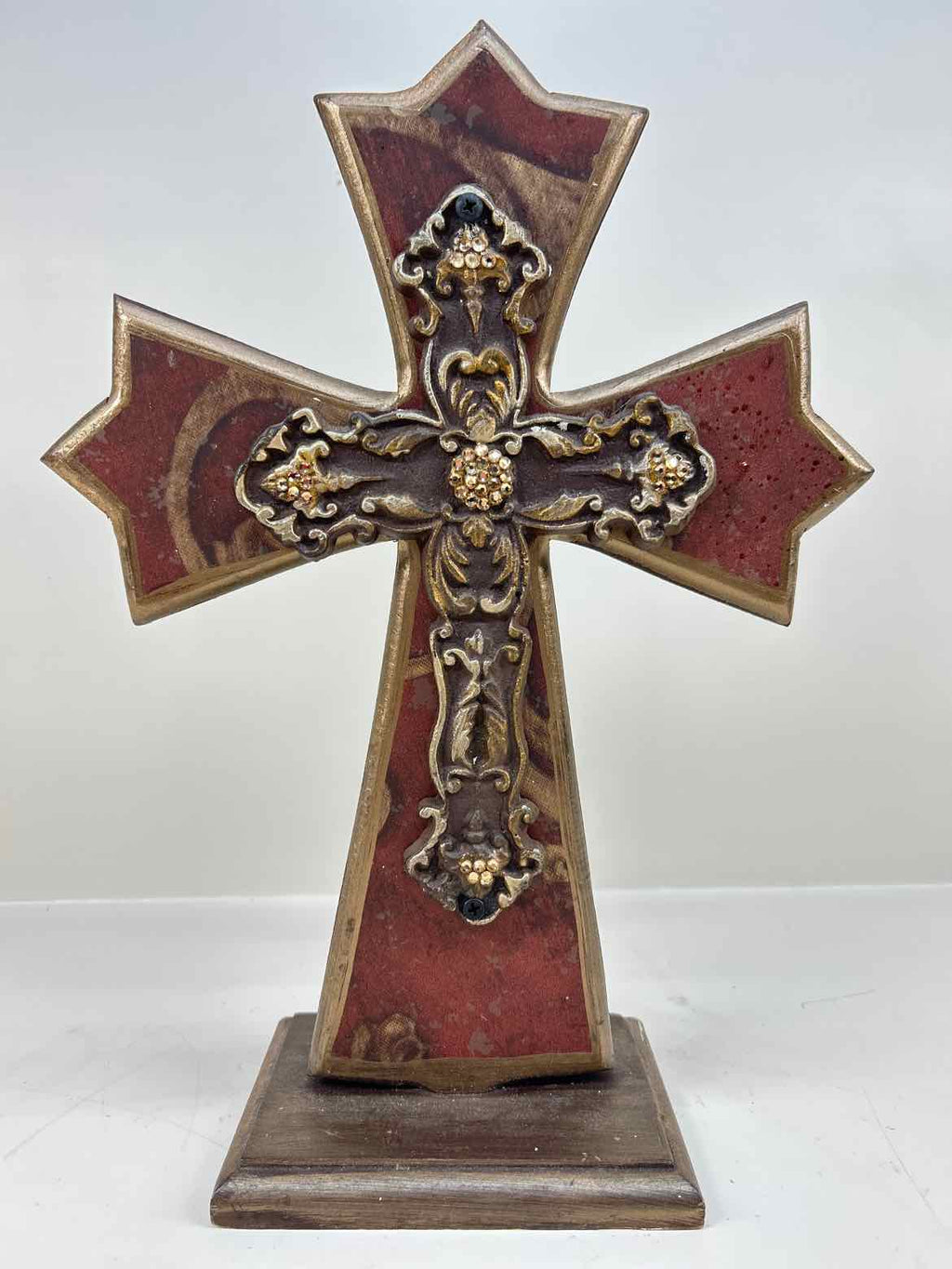 Wood Tabletop Cross w/ Jewels - 15.5" Tall x 12" Wide
