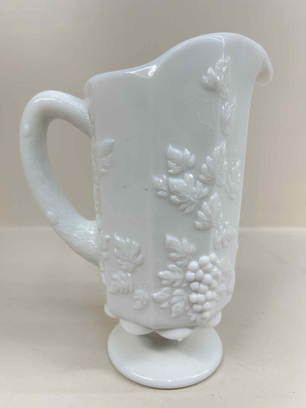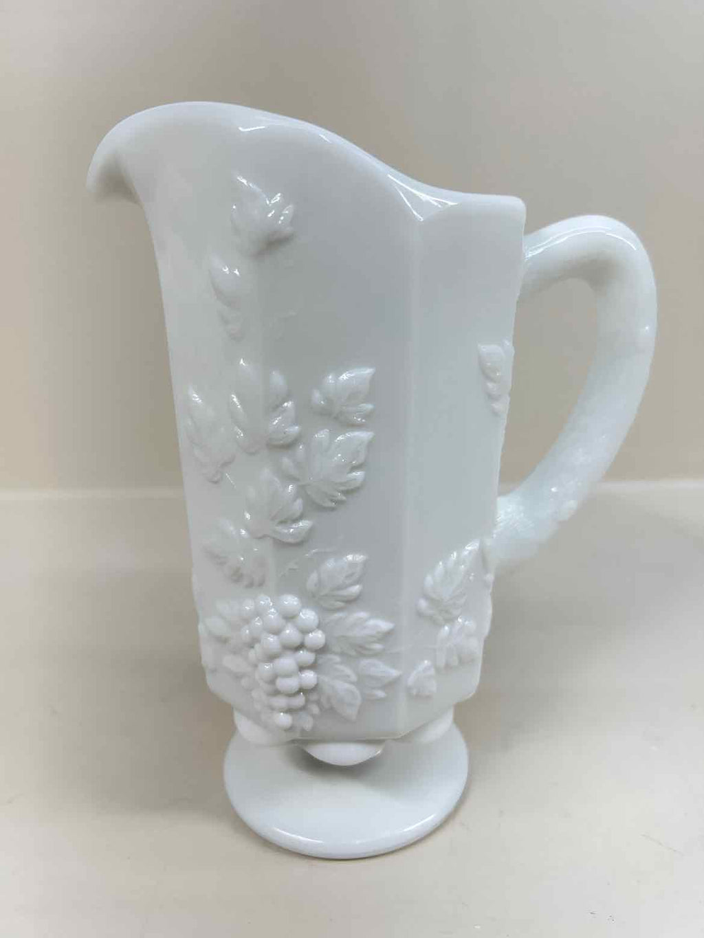 Westmoreland Milk Glass Grape Vine Pattern Pitcher - 8.5" Tall