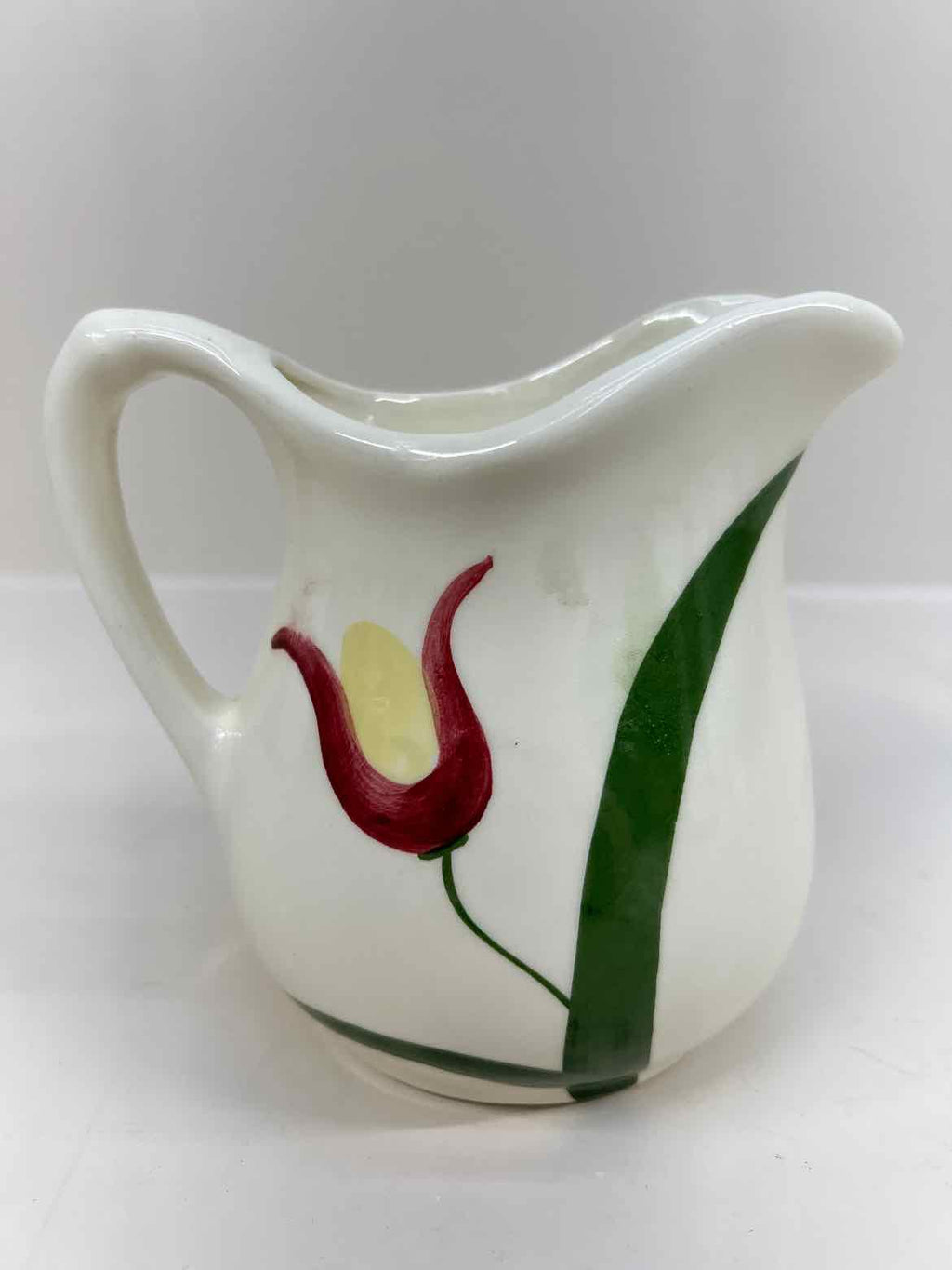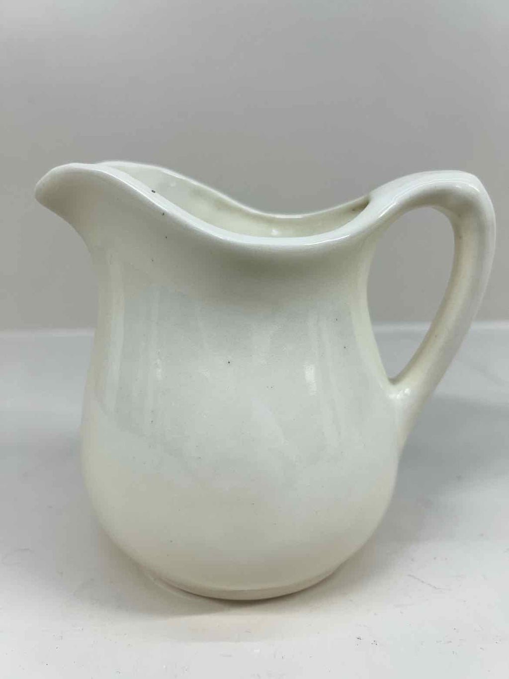 White Ceramic Pitcher w/ Hand Painted Flower - 6" Tall