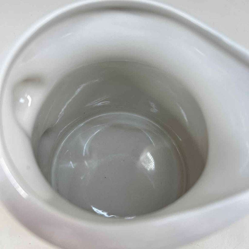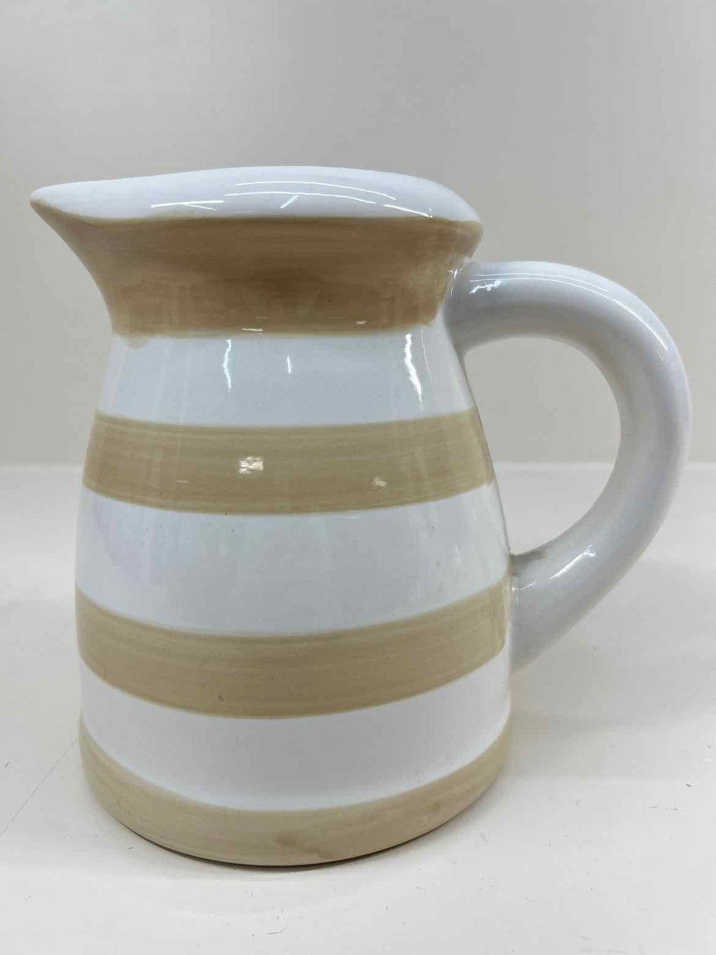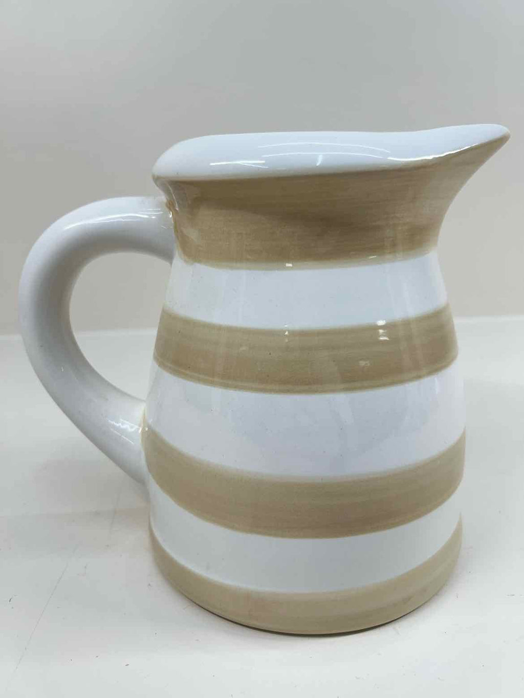Chefs Large White & Beige Striped Ceramic Pitcher - 7.5" Tall x 9" Wide