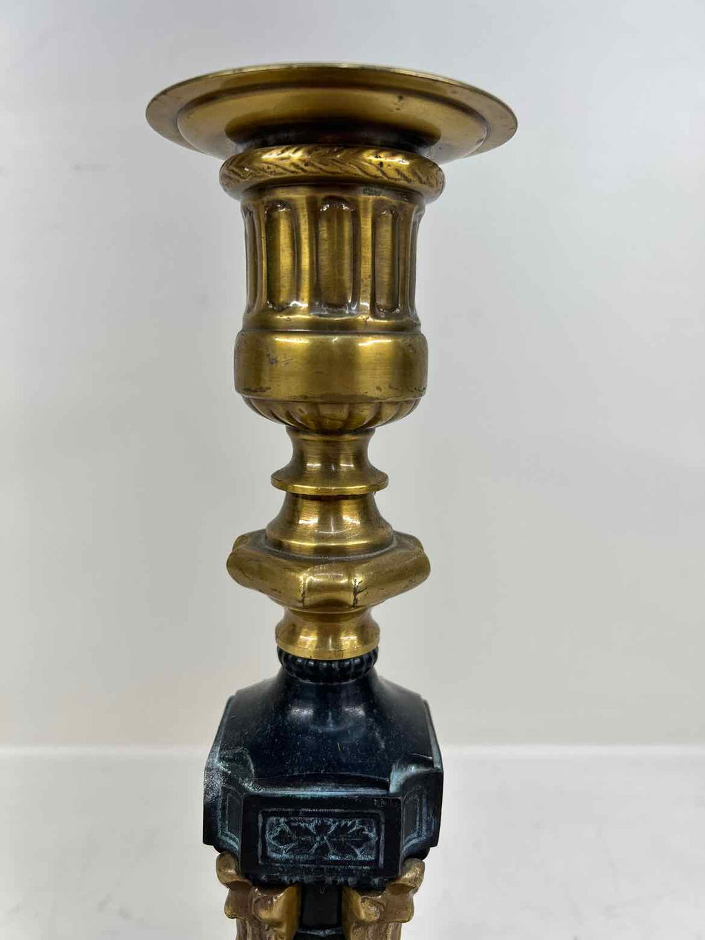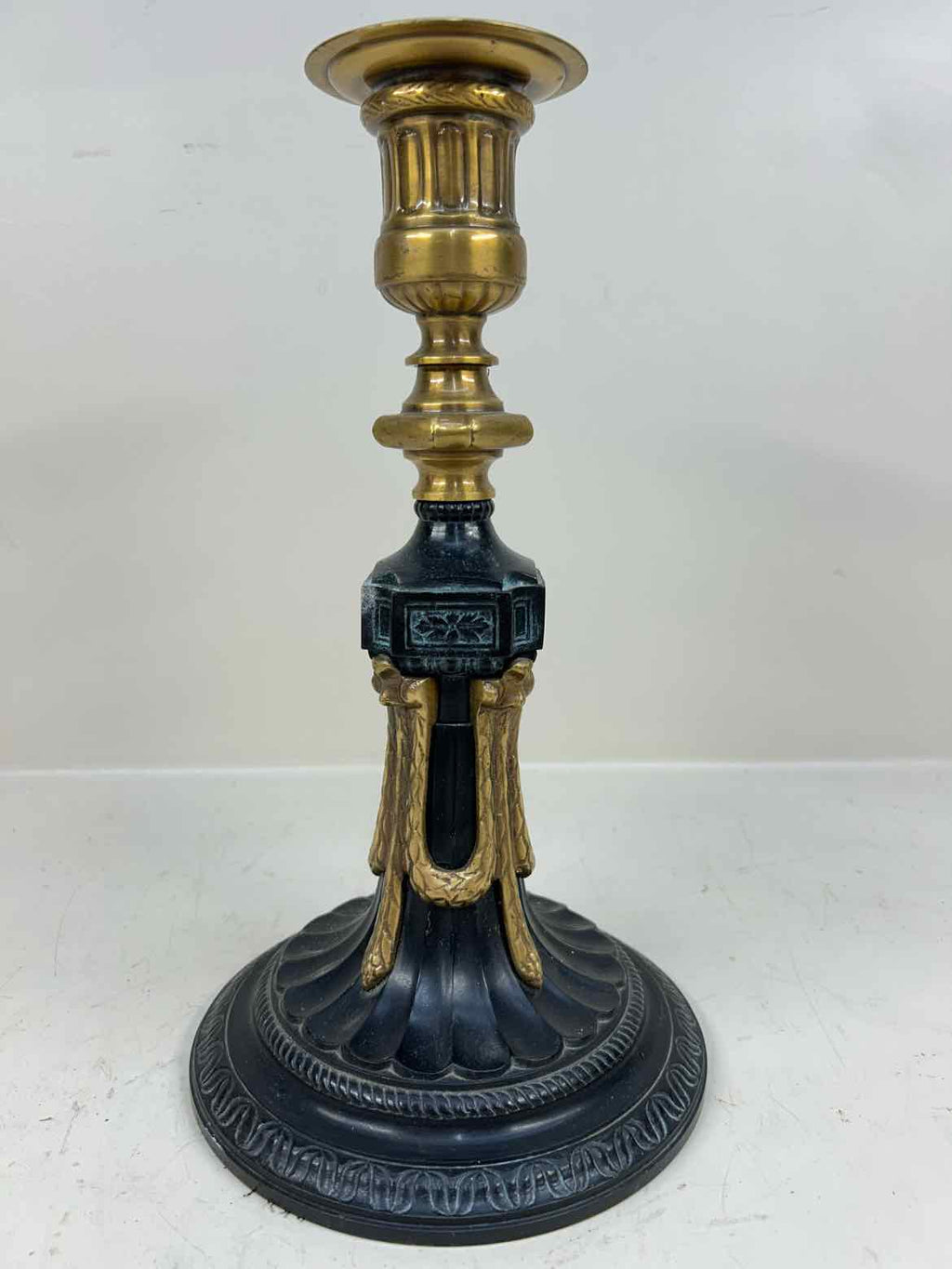 Heavy Metal & Brass Candlestick Holder - 12.5" Tall