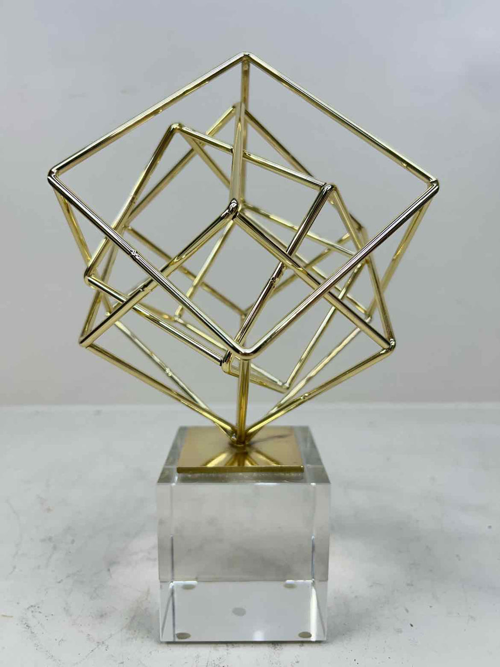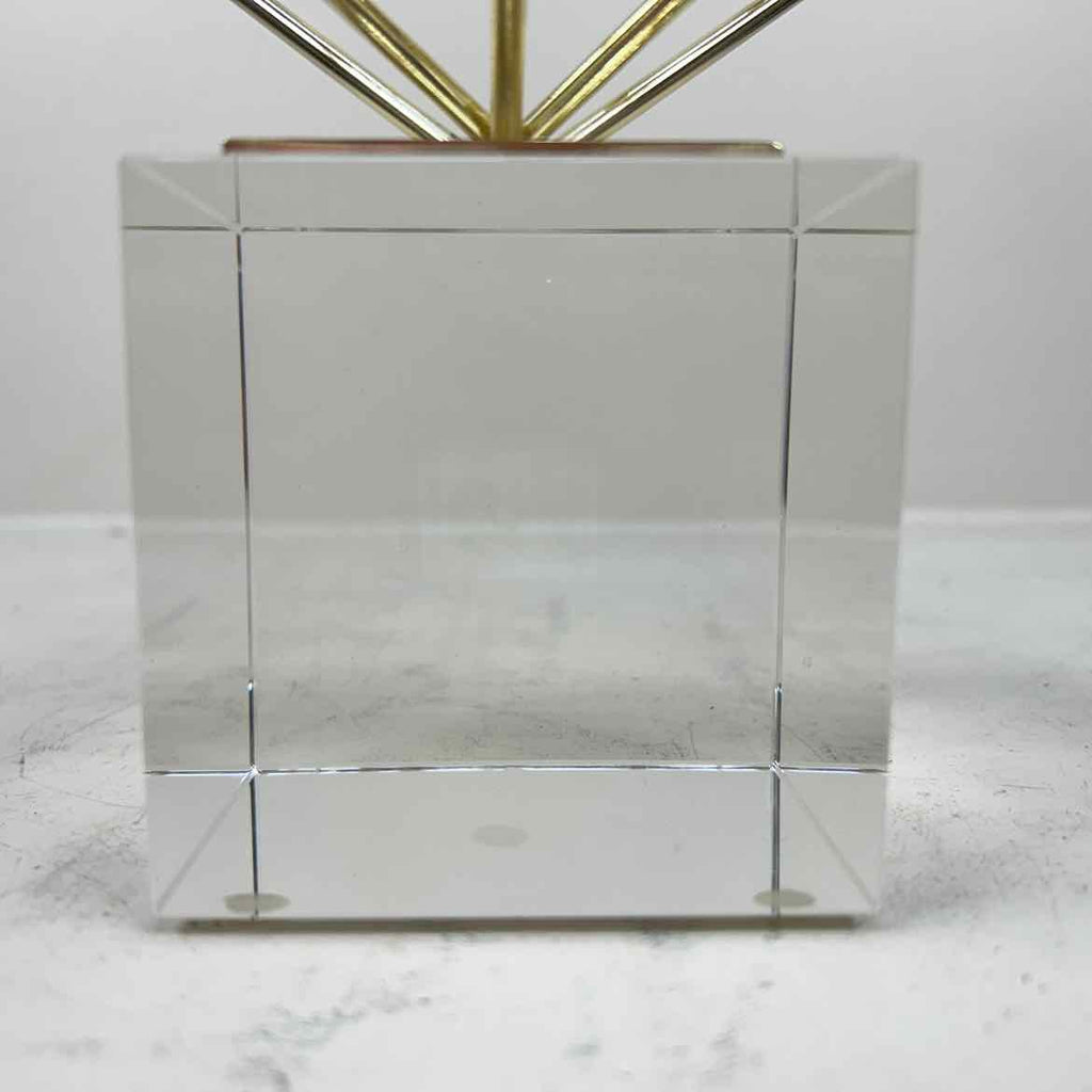 Gold Geometric Table Accent W/ Clear Square Base - 10" Tall x 7" Wide x 7" Deep
