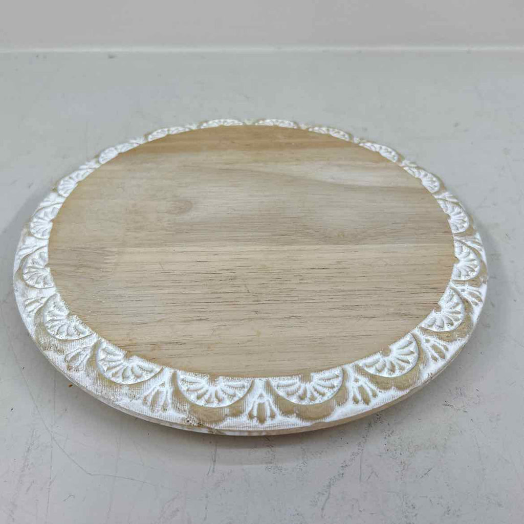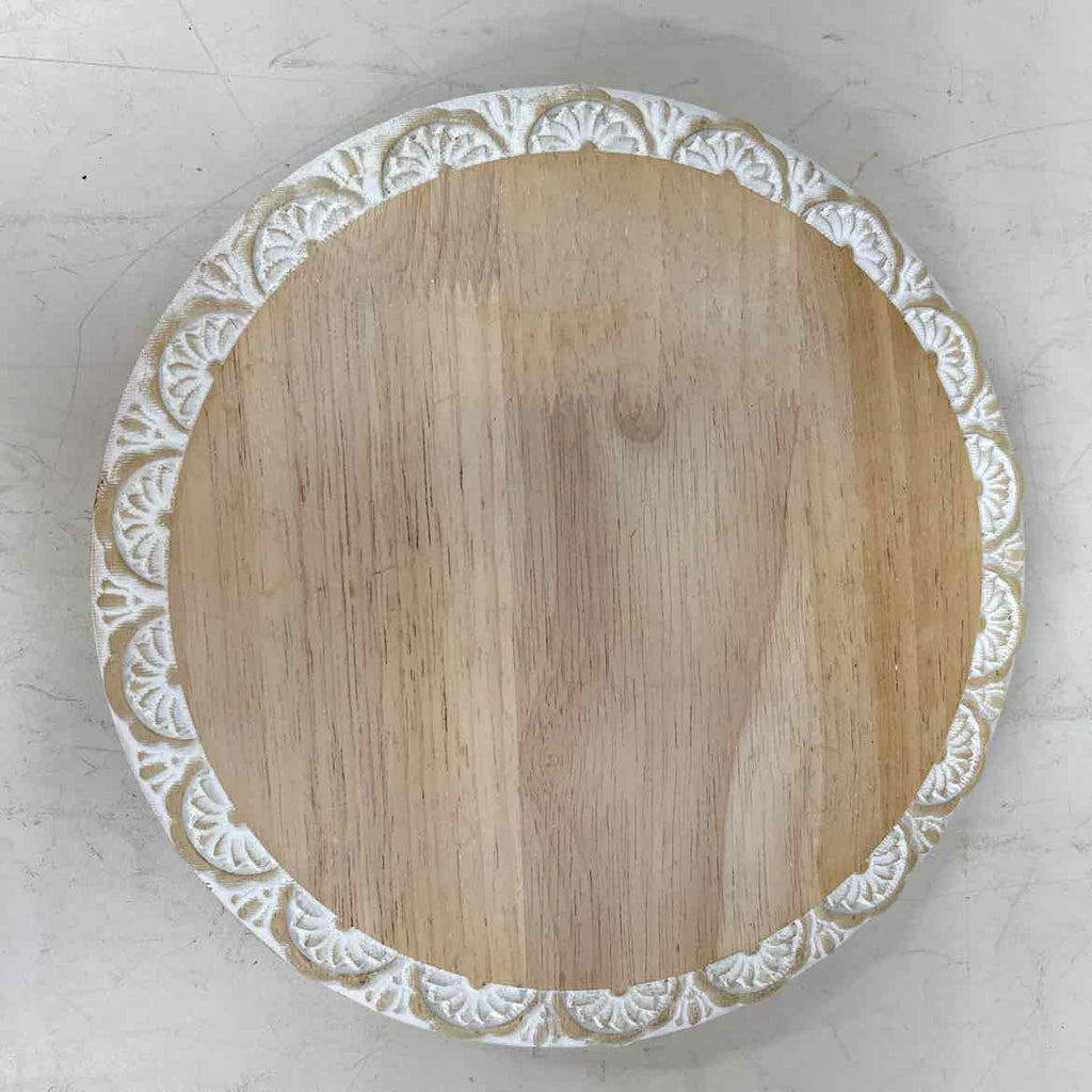 Carved Wood & White - Lazy Susan - 1" Tall x 10" Wide