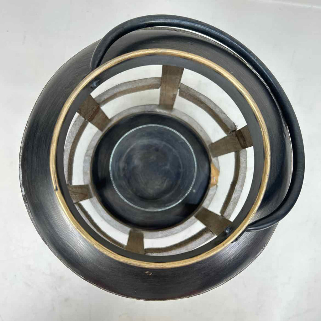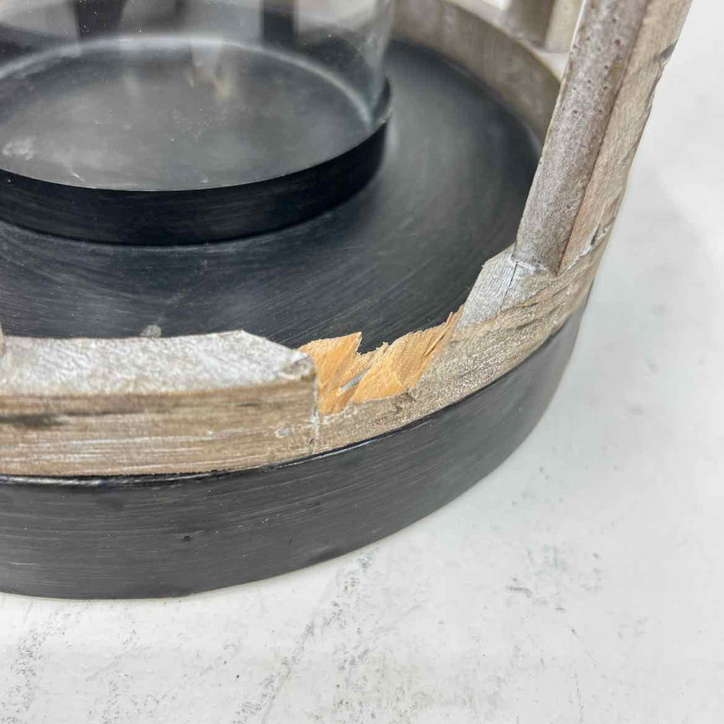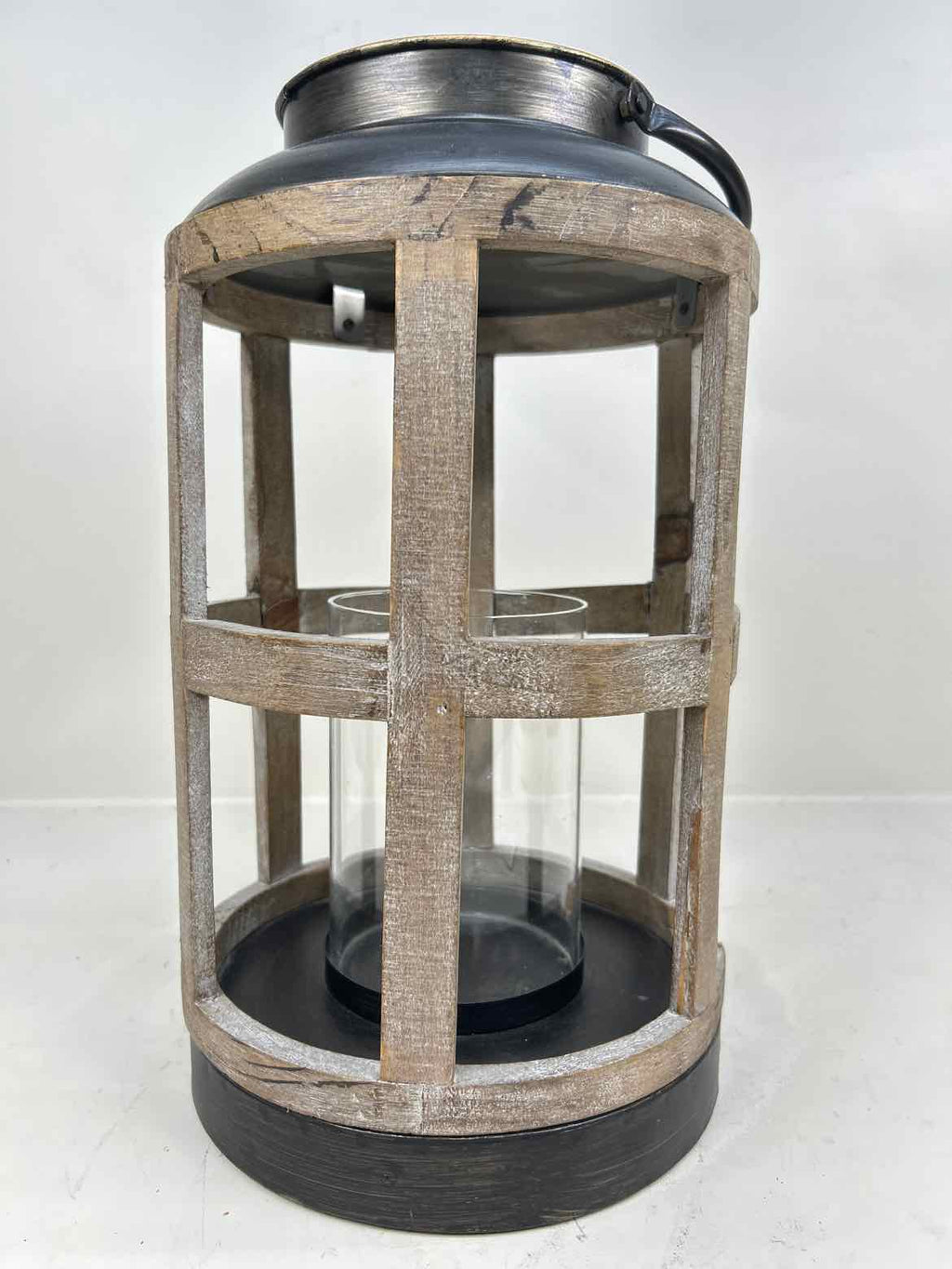 Rustic Wood, Tin, & Glass Candle Holder W/ Handle - 14" Tall x 8.5" Wide
