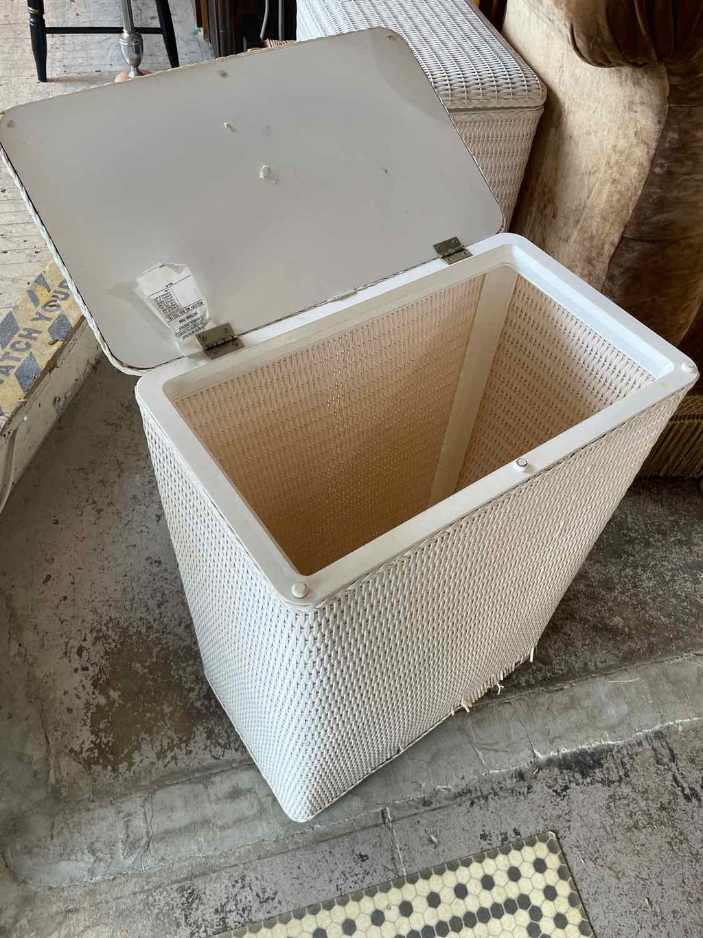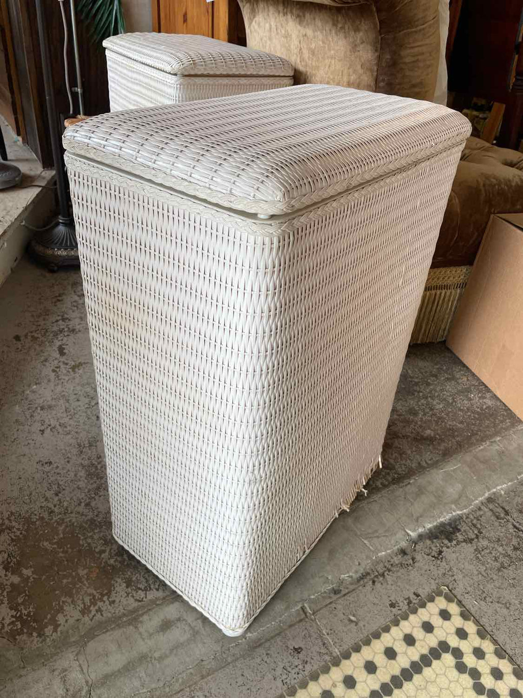 Vintage White Wicker Laundry Basket - 30" Tall x 21" Wide x 13" Deep