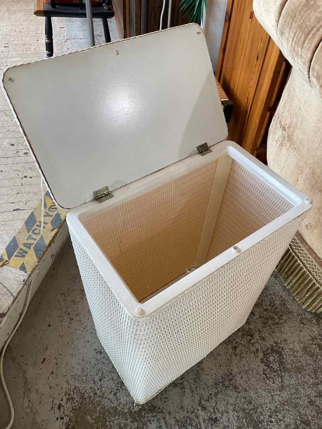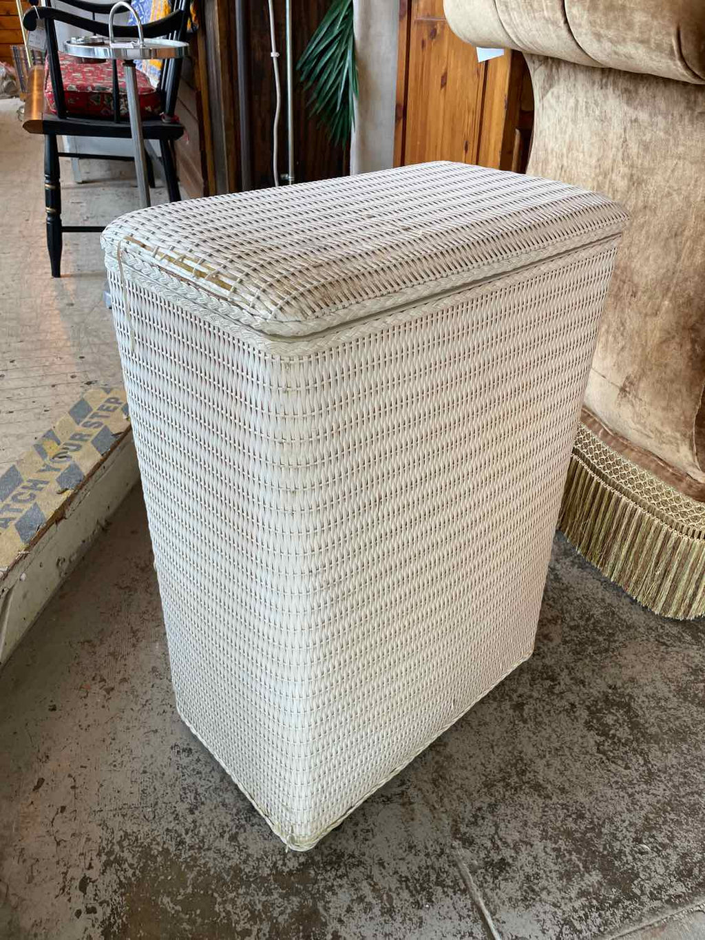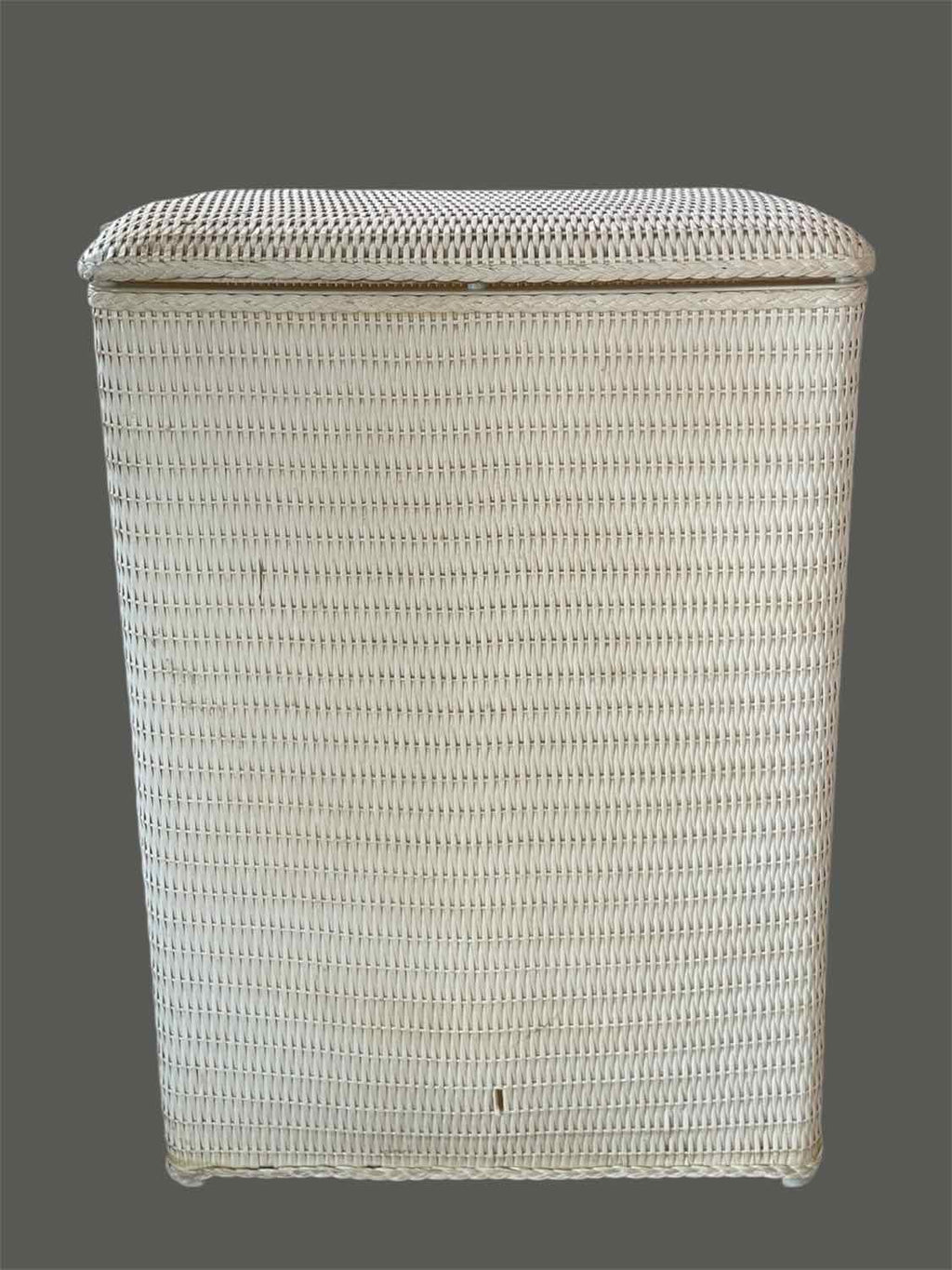 Vintage White Wicker Laundry Basket - 30" Tall x 21" Wide x 13" Deep