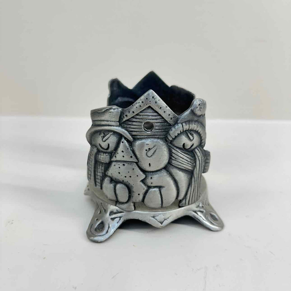 Vintage Metal Snowman Candle Holder - 4" Tall