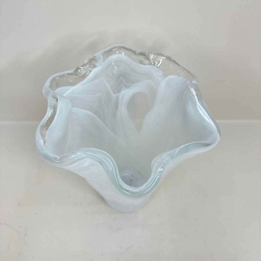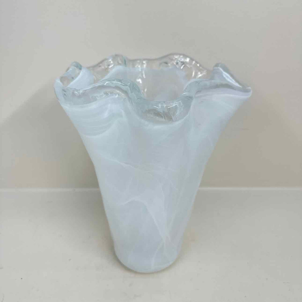 Italian Hand Blown White Glass Vase - 11" Tall x 8" Wide