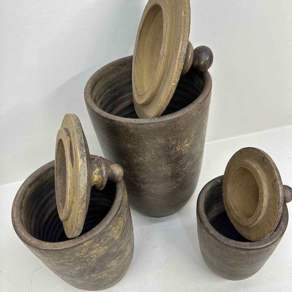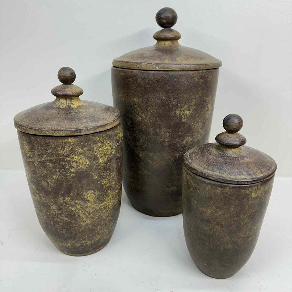 Set of 3 Ceramic Canisters w/ Lids - 15.5" Tall