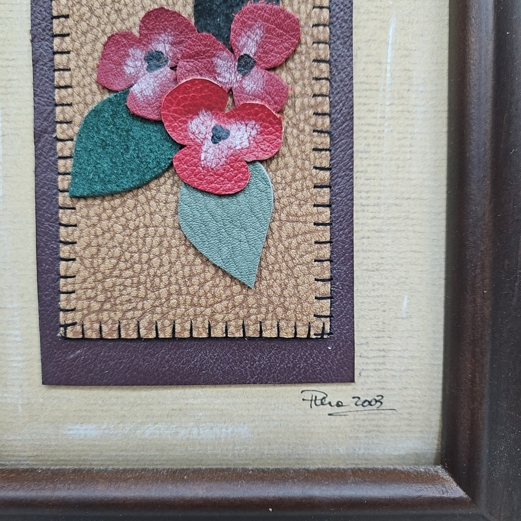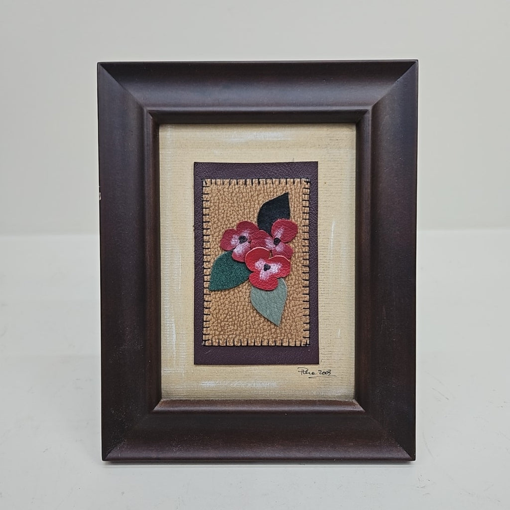 Brown Framed Leather Flowers - 9.5" x 7.5"