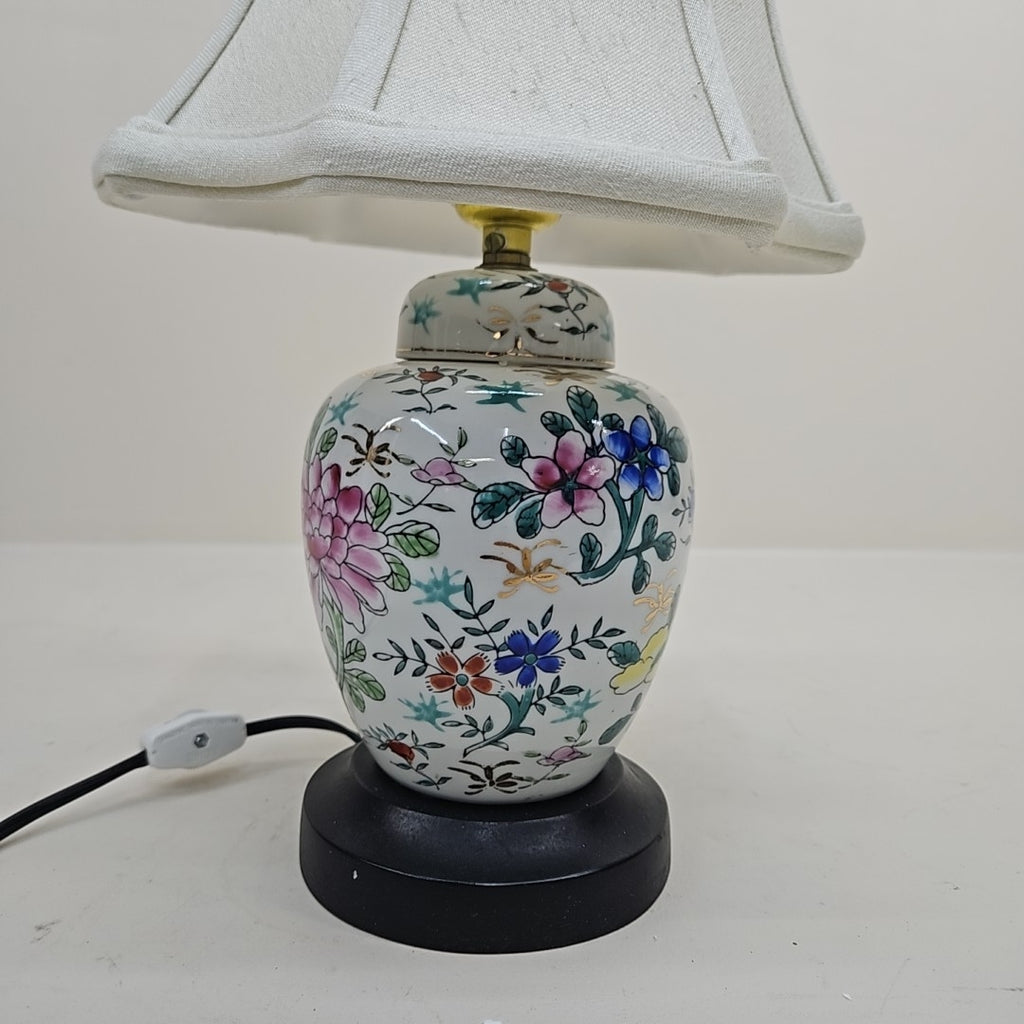 Small Porcelain Ginger Jar Style Lamp w Custom Shade - 13" Tall