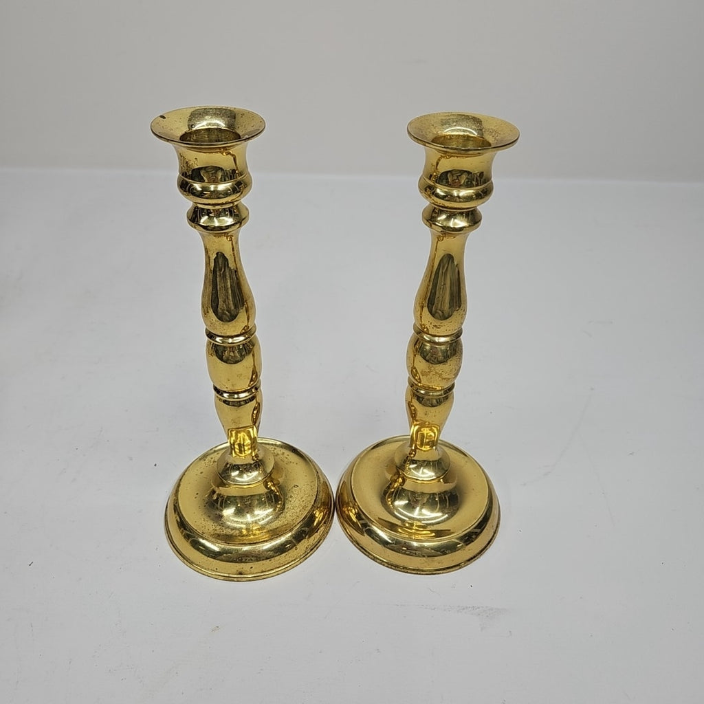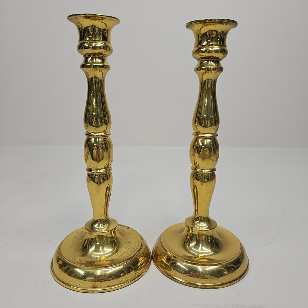 Set of 2 Vintage Brass Candlesticks - Pair - 9" Tall