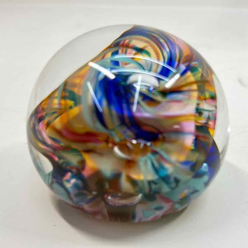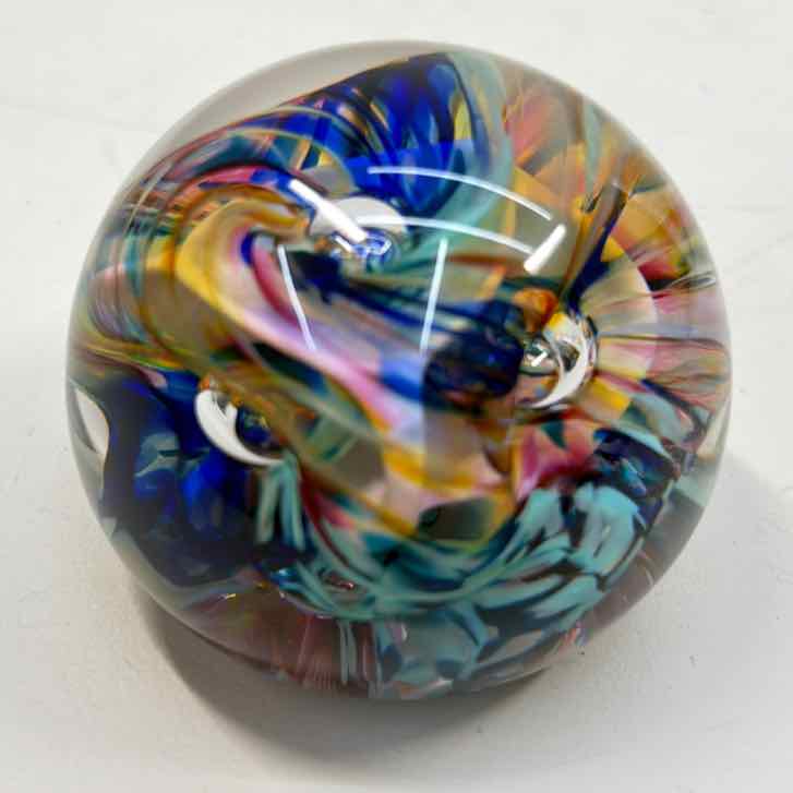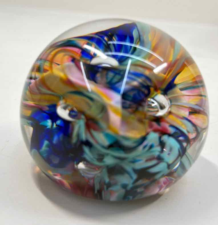 Vintage Handmade & Signed Multicolored Glass Paperweight - 2.5" Tall