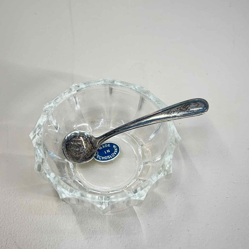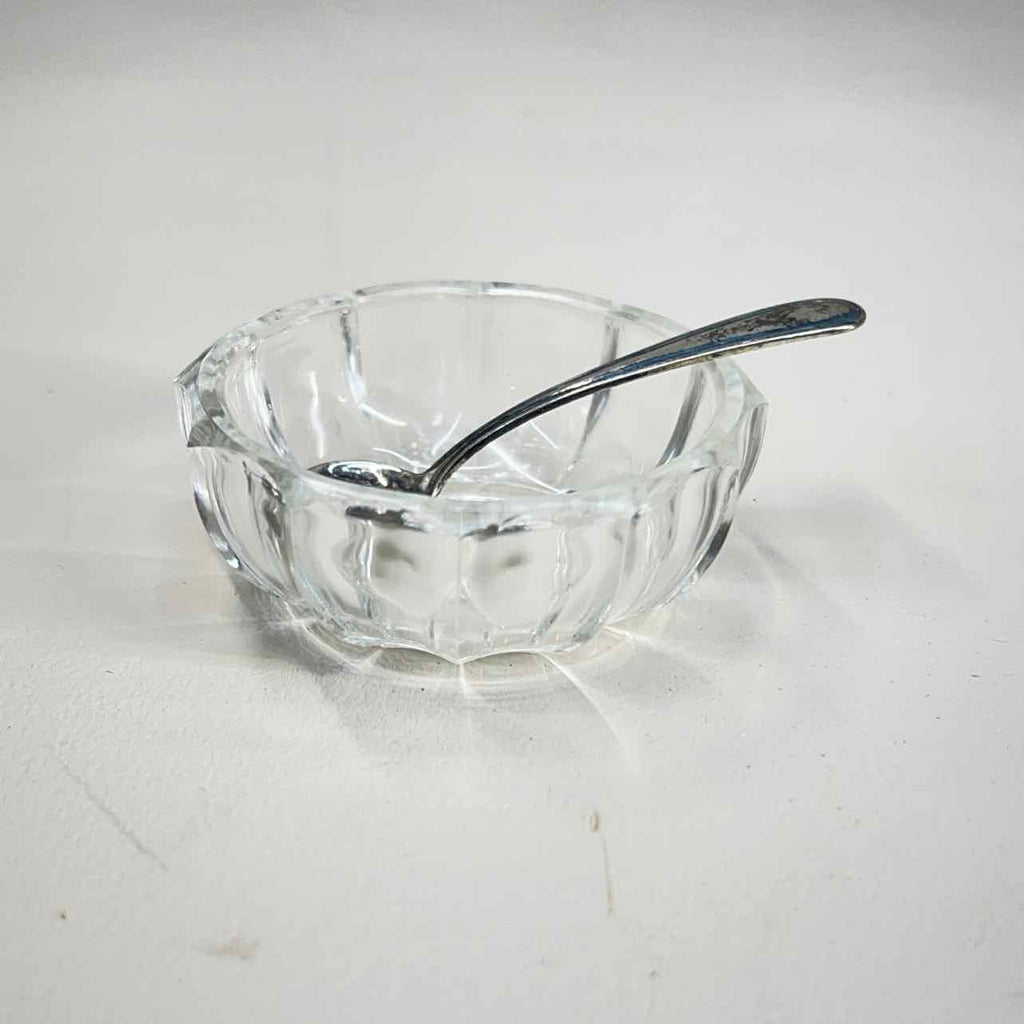Vintage Glass Salt Cellar w/ Sterling Silver Spoon - 1" Tall