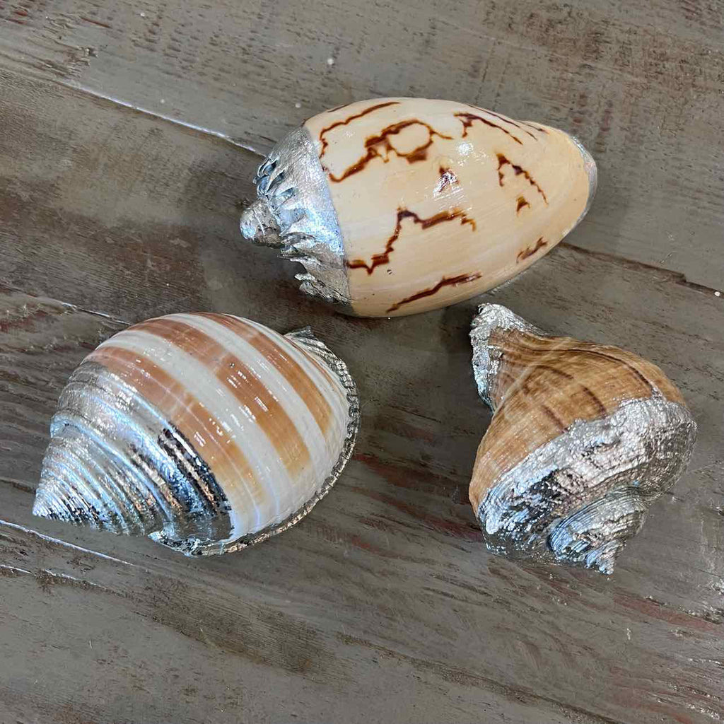 Set of 3 Assorted Seashells w/ Silver Accents