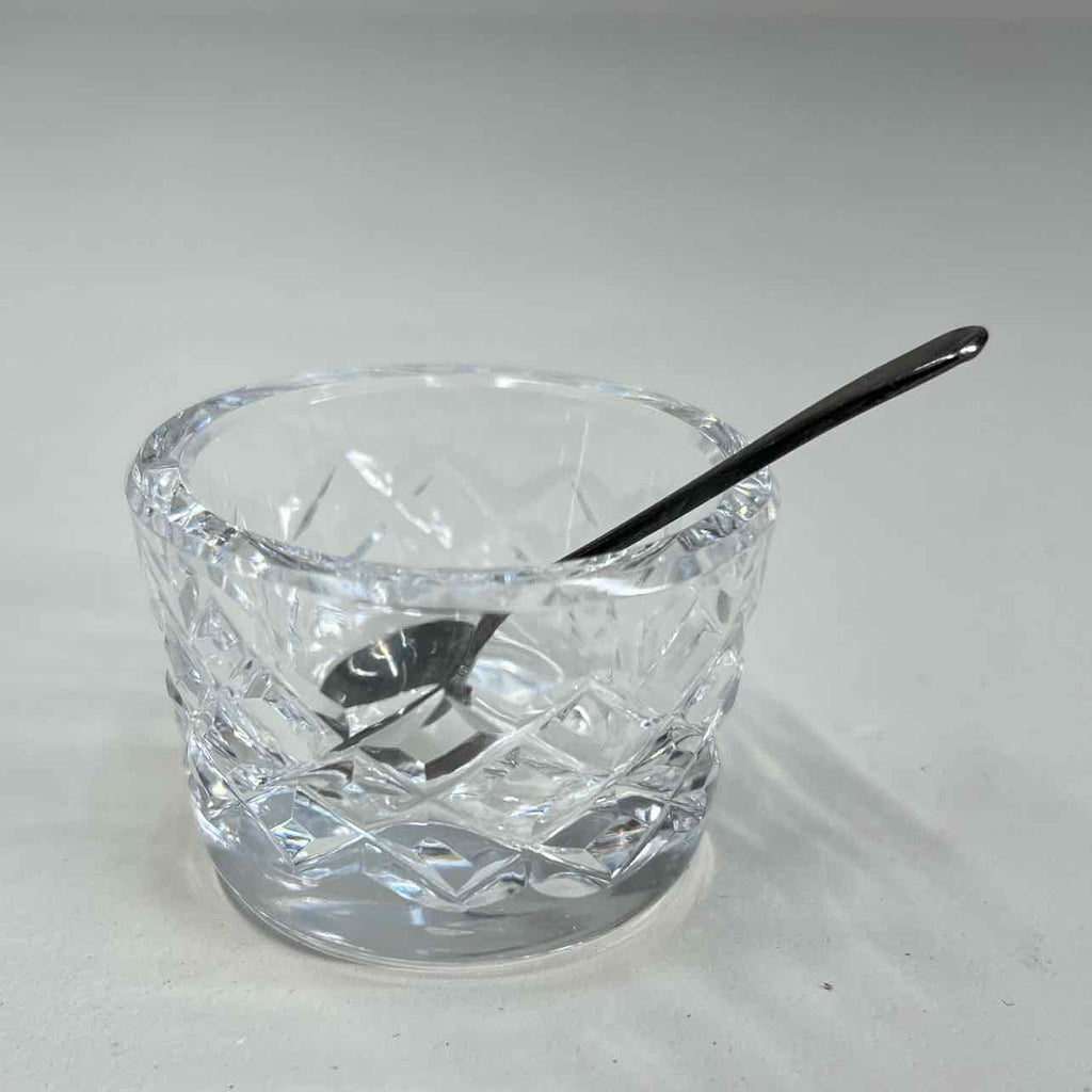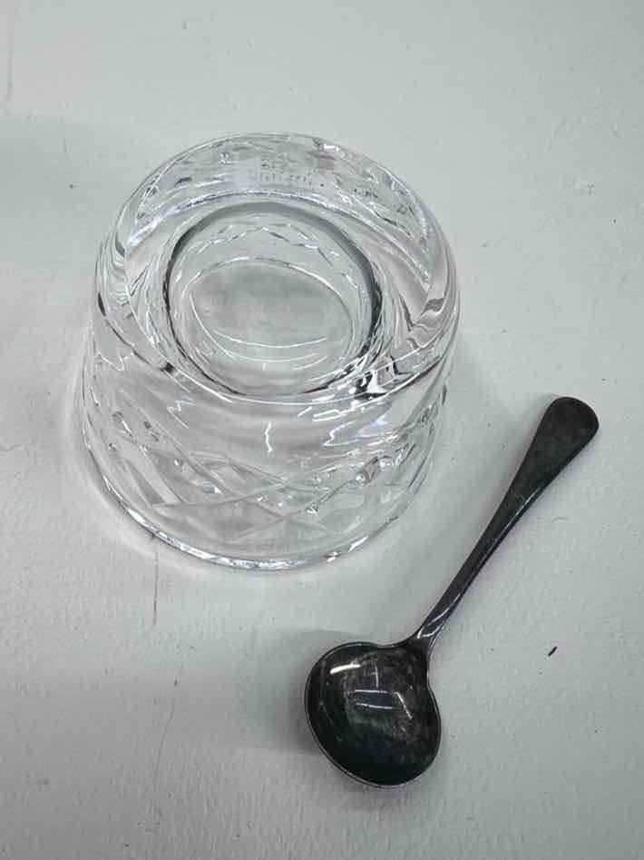 Waterford Crystal Comeragh Salt Cellar w/ Metal Spoon - 1.5" Tall