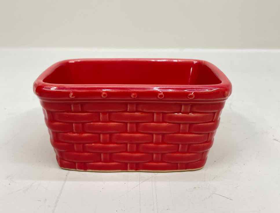 Red Basket Style Ceramic Piece - Has a crack- 2" Tall x 4.5" Wide