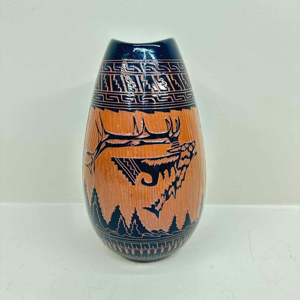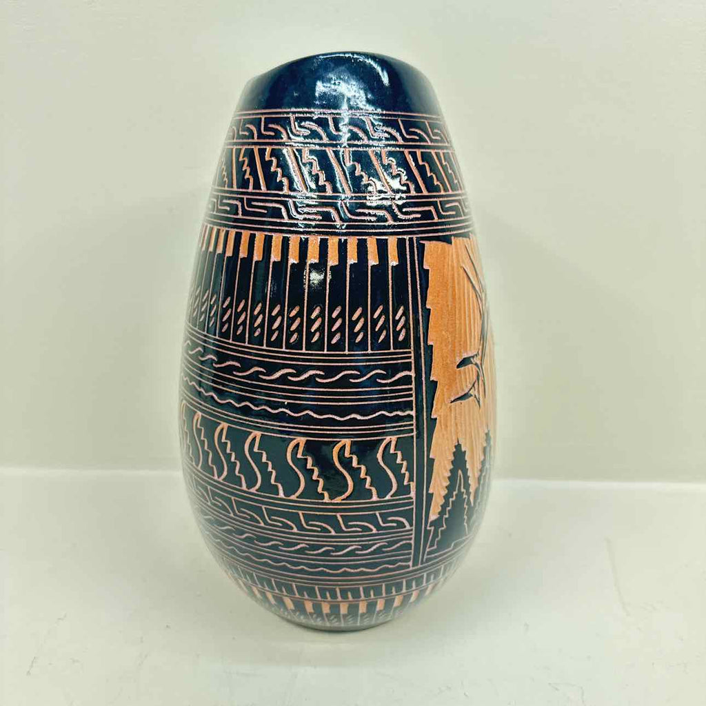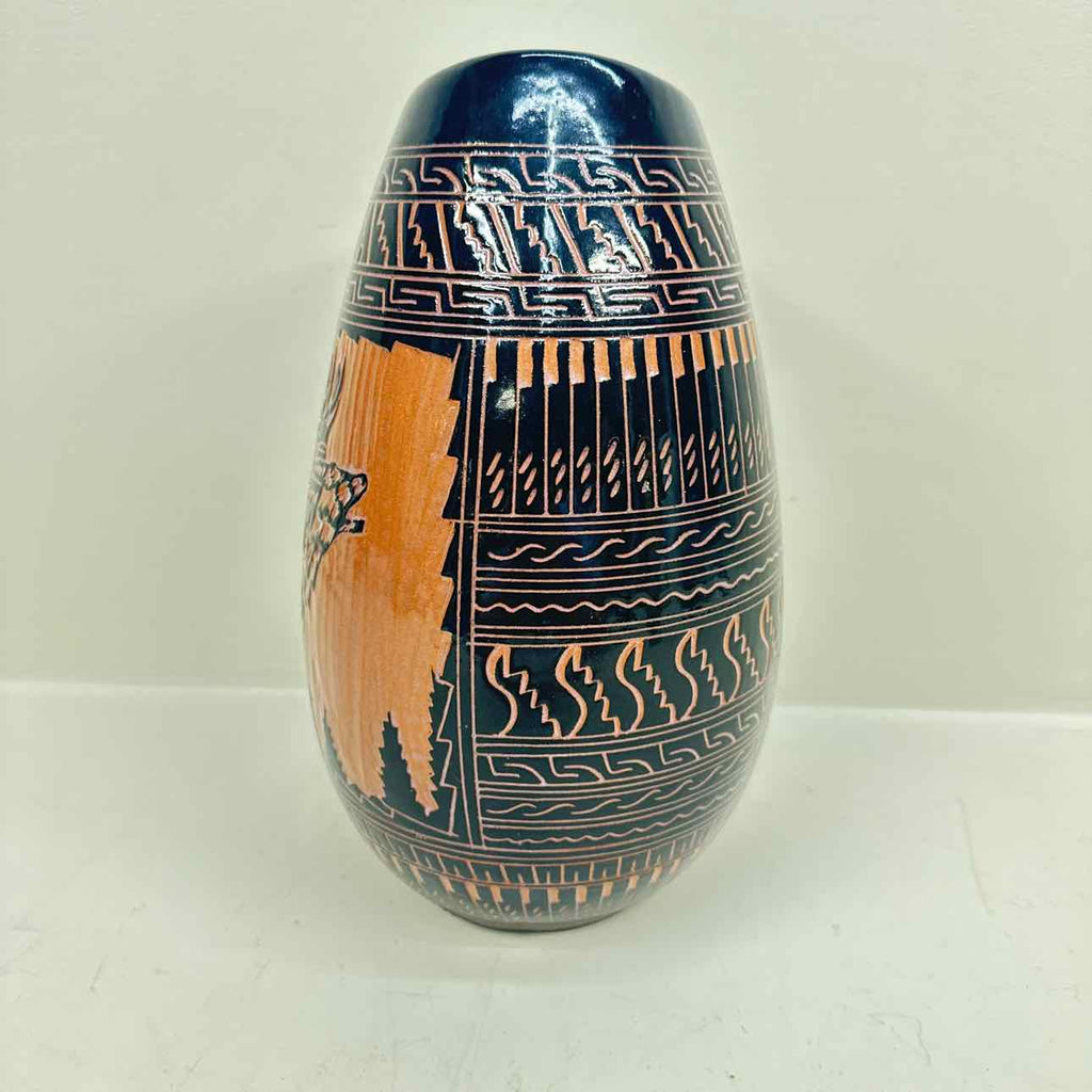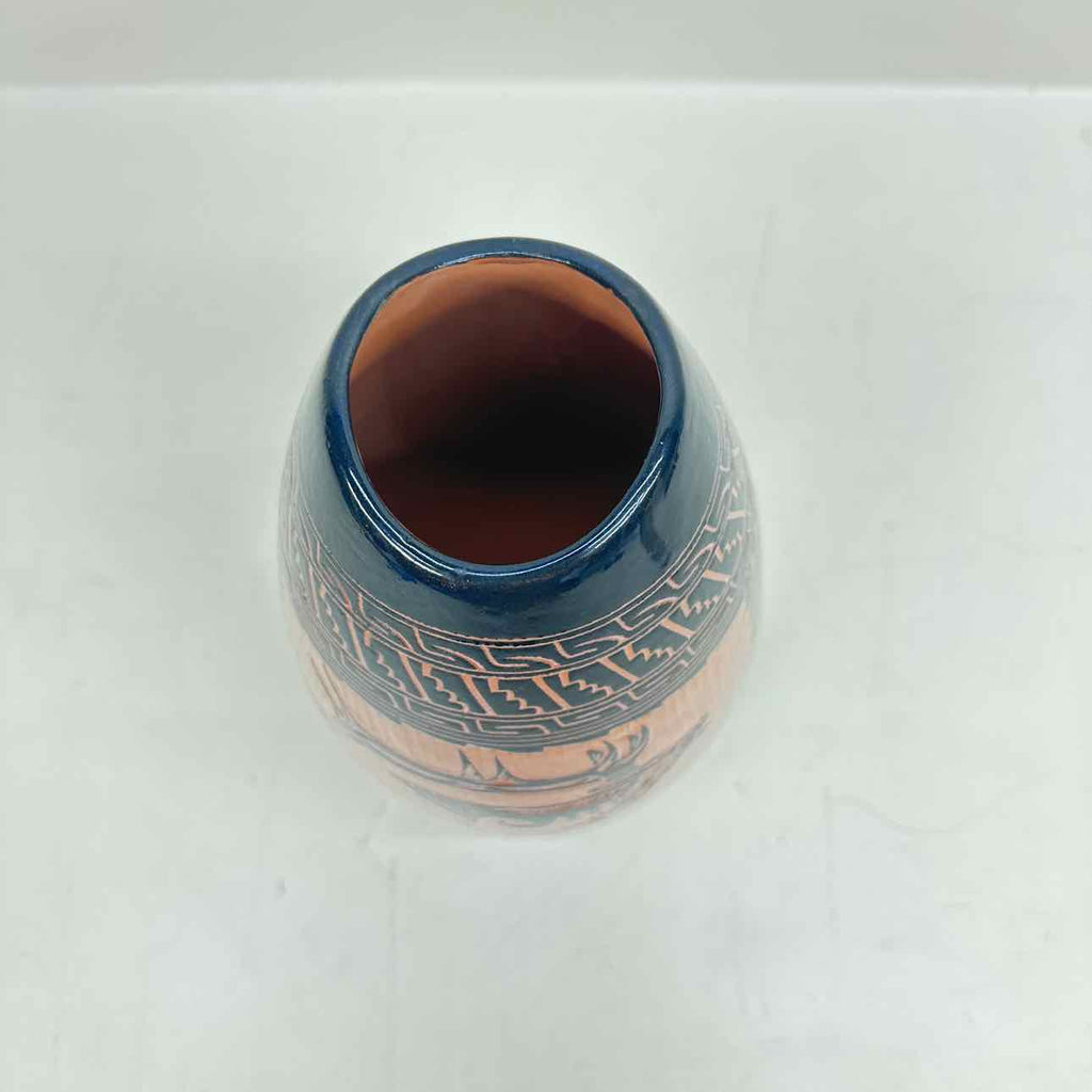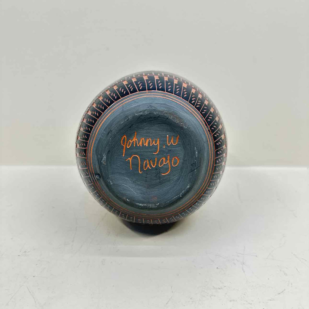 Hand Etched Navajo Pottery Vase - Signed Johnny W. - 10.5" Tall