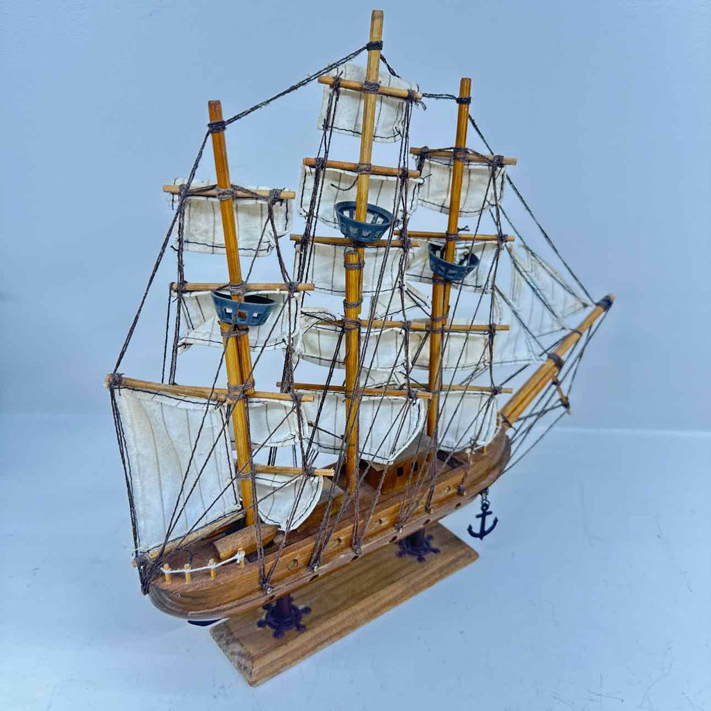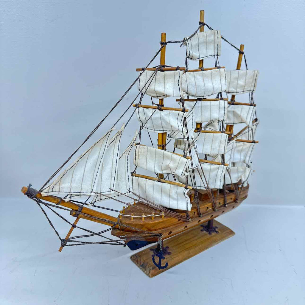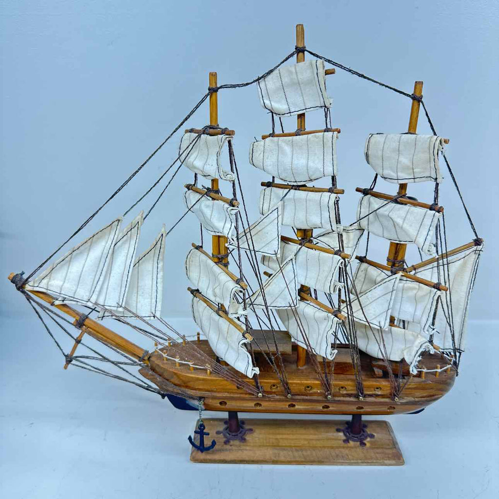 Vintage Model Ship Decor - White Sails - Roughly 12" Tall x 14" Wide