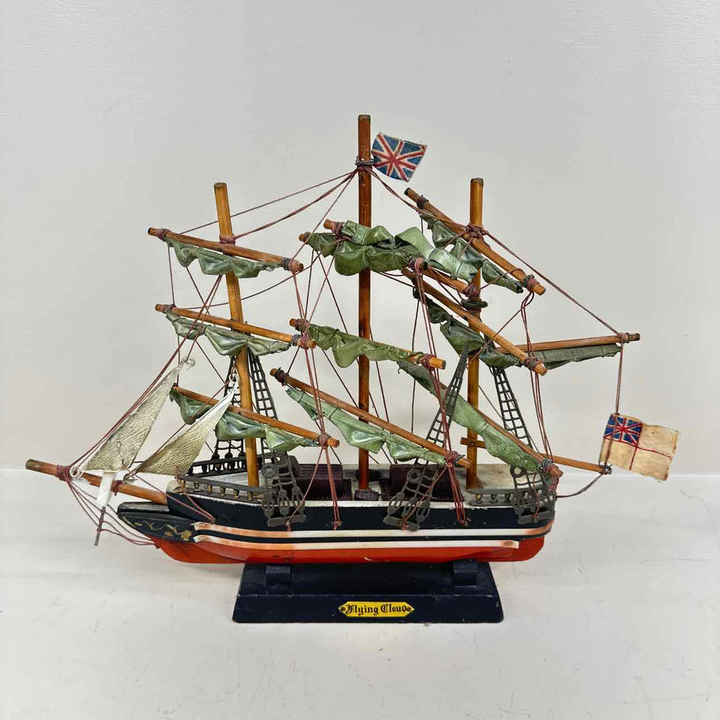 Vintage Model Ship Decor - "Flying Cloud" - Roughly 12" Tall x 14" Wide