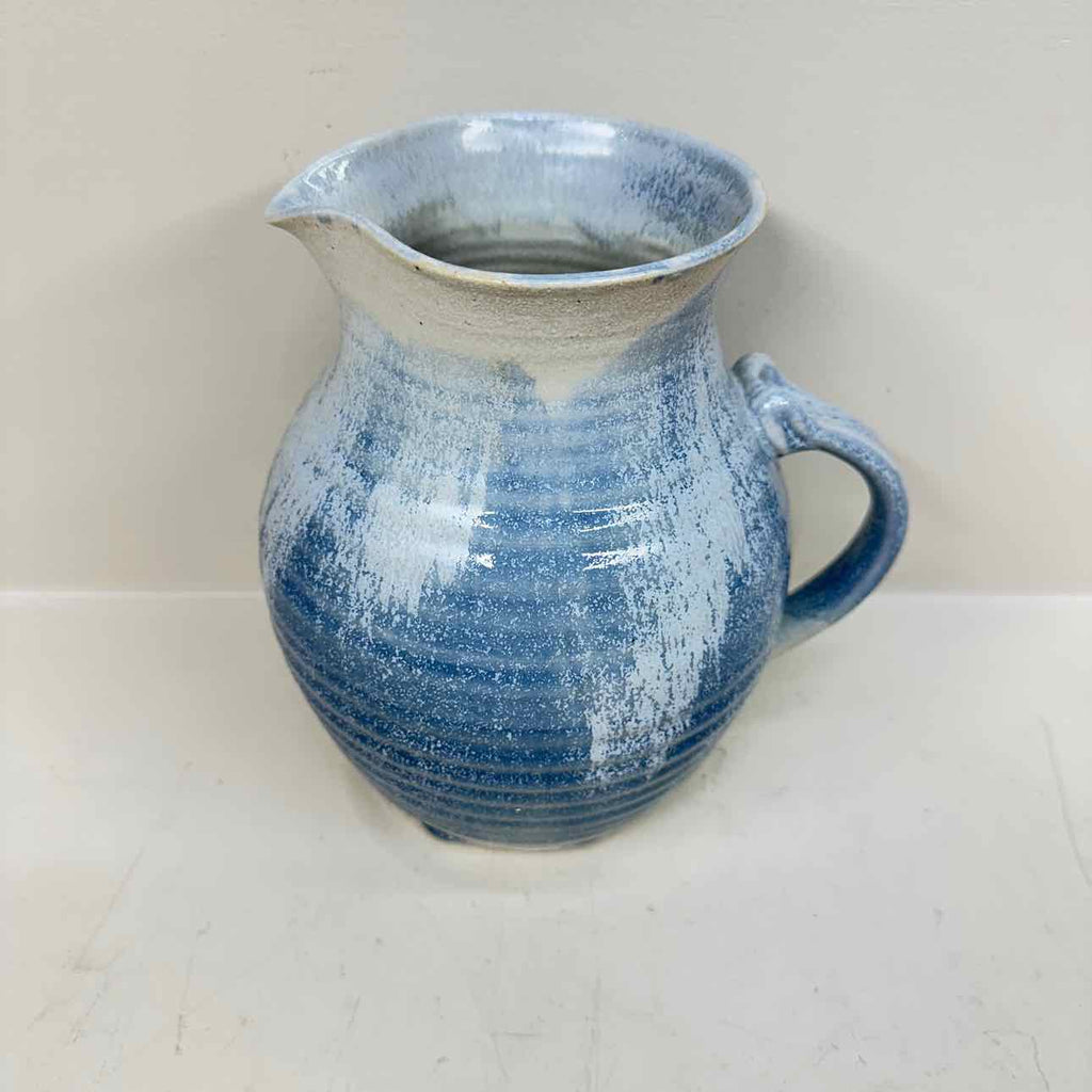 Blue Pottery Pitcher Signed Robinson - 8" Tall x 7" Wide