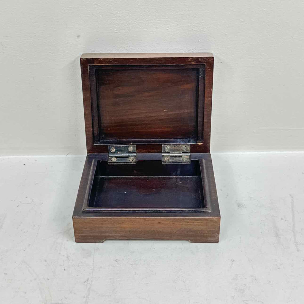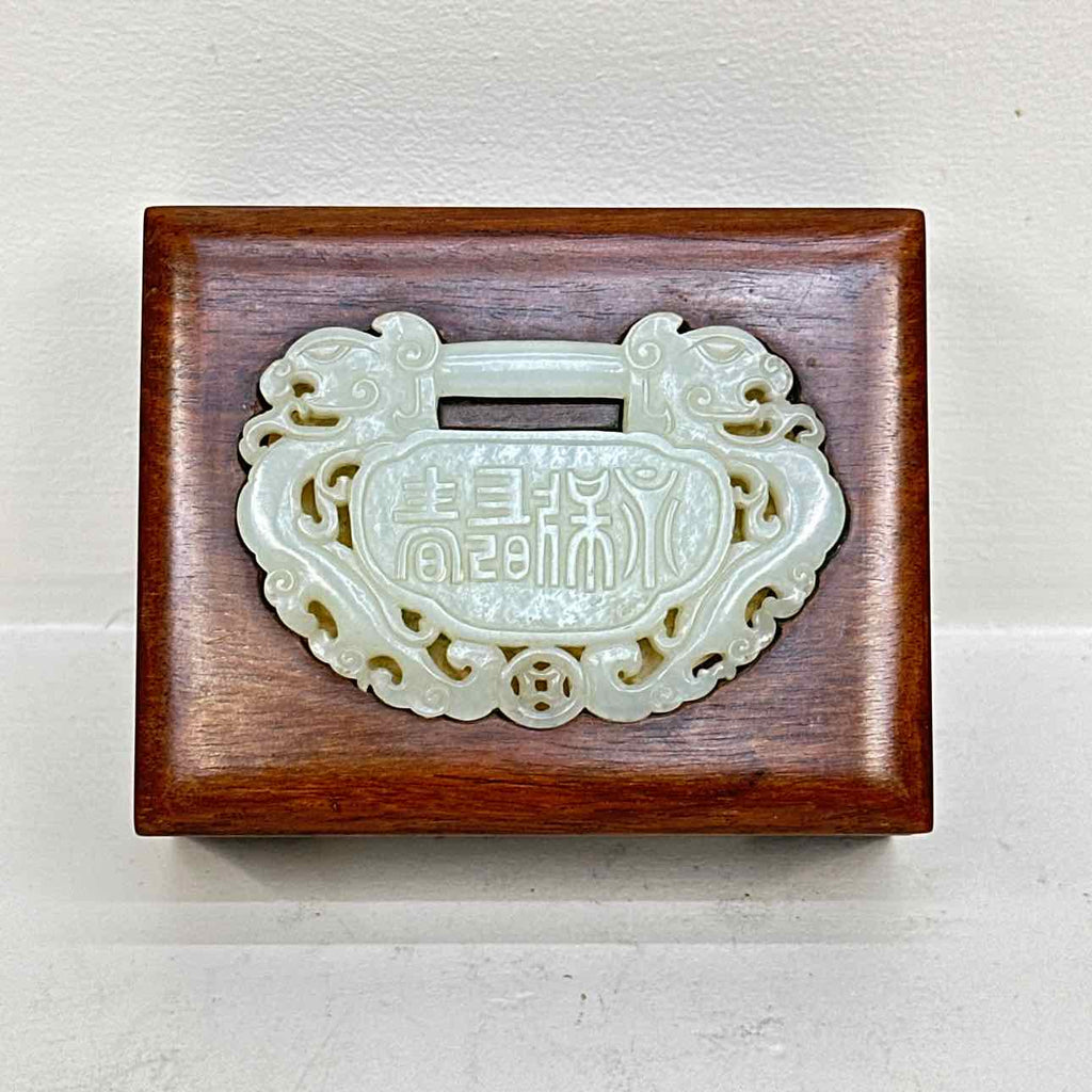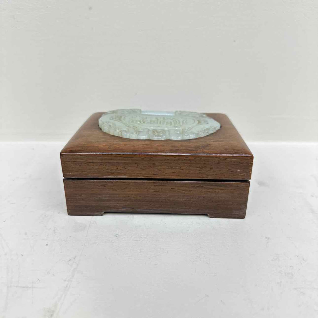 Chinese Wood Box w/ Carved Jade Plaque - 2" Tall x 4.5" Wide