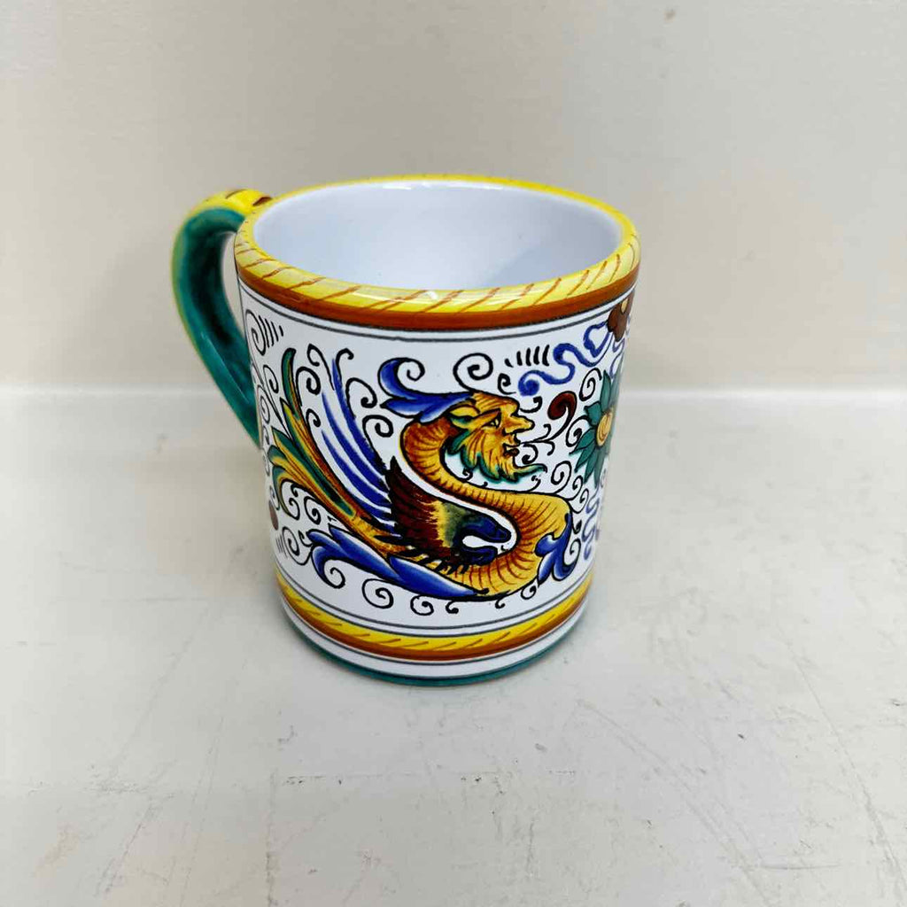 Deruta Italy Dragon Hand Painted Mug - 4" Tall