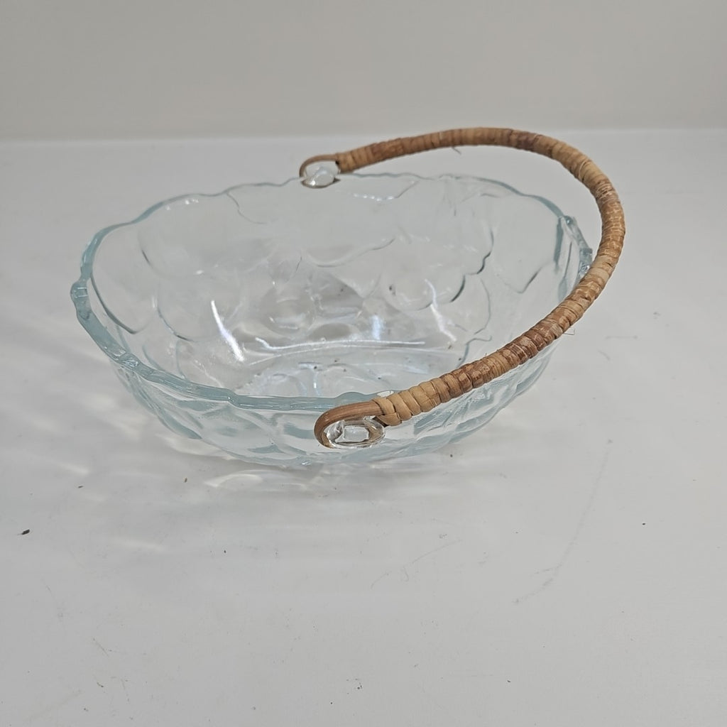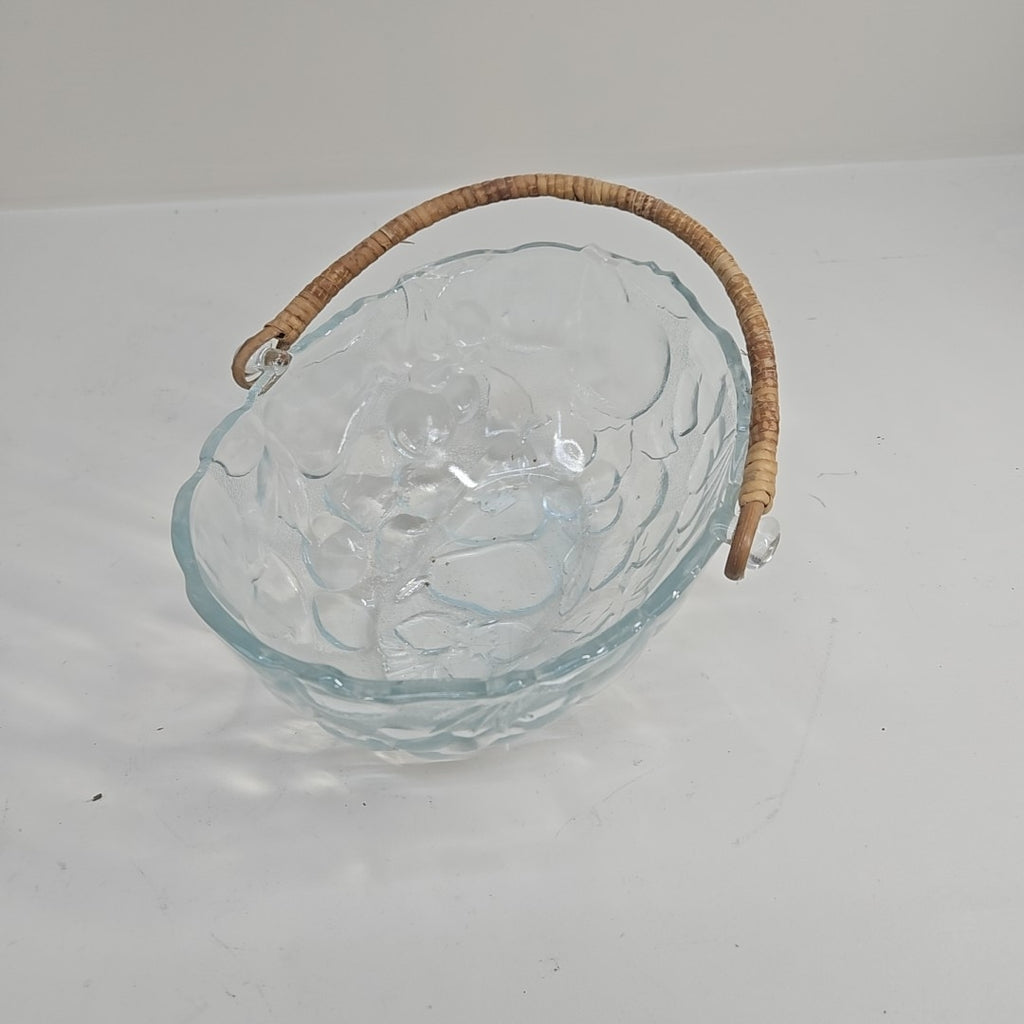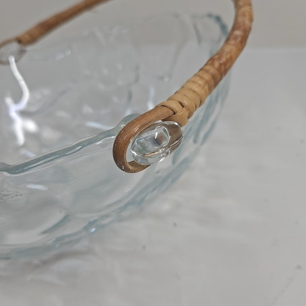 Vintage Glass Fruit Bowl w/ Wrapped Handle - 4" Tall x 10" Across
