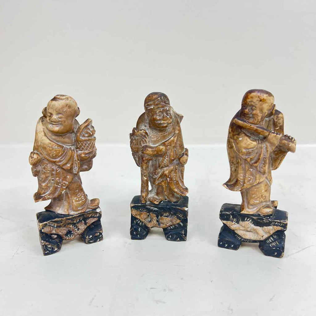 Set of 3 Carved Soapstone Figures - 4" Tall