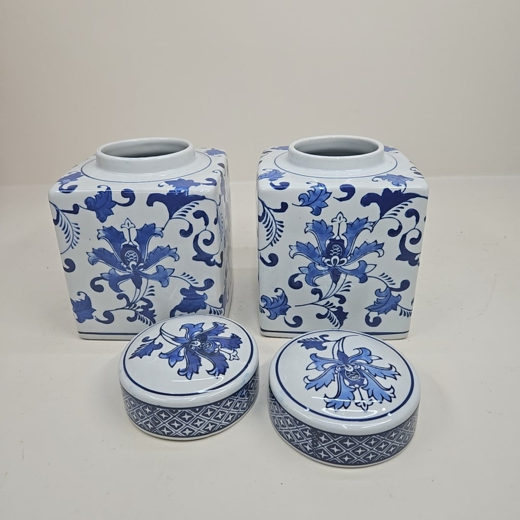 Set of 2 Square Canisters w/ Lids - 8.5" Tall