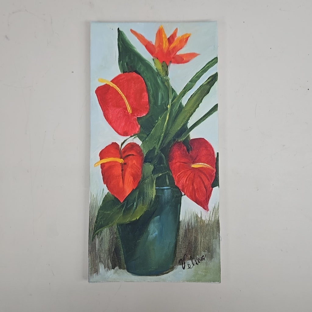 Unframed Original Painting of " The Exotic Flower" by Nacogdoches Artists - 16" x 8"